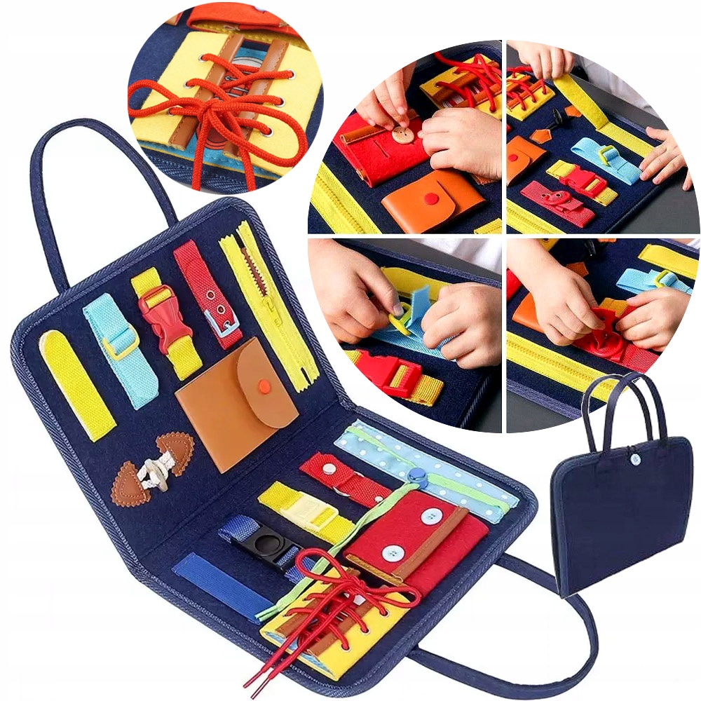 Оригинальная развивающая доска с застежкой Сенсорная доска для детей – предложение для каждого ребенка. Игрушечная, переносная сумка для хранения различных предметов, которая обязательно вызовет любопытство вашего ребенка. Папка предназначена для раннего обучения, очень удобна для переноски и хранения.