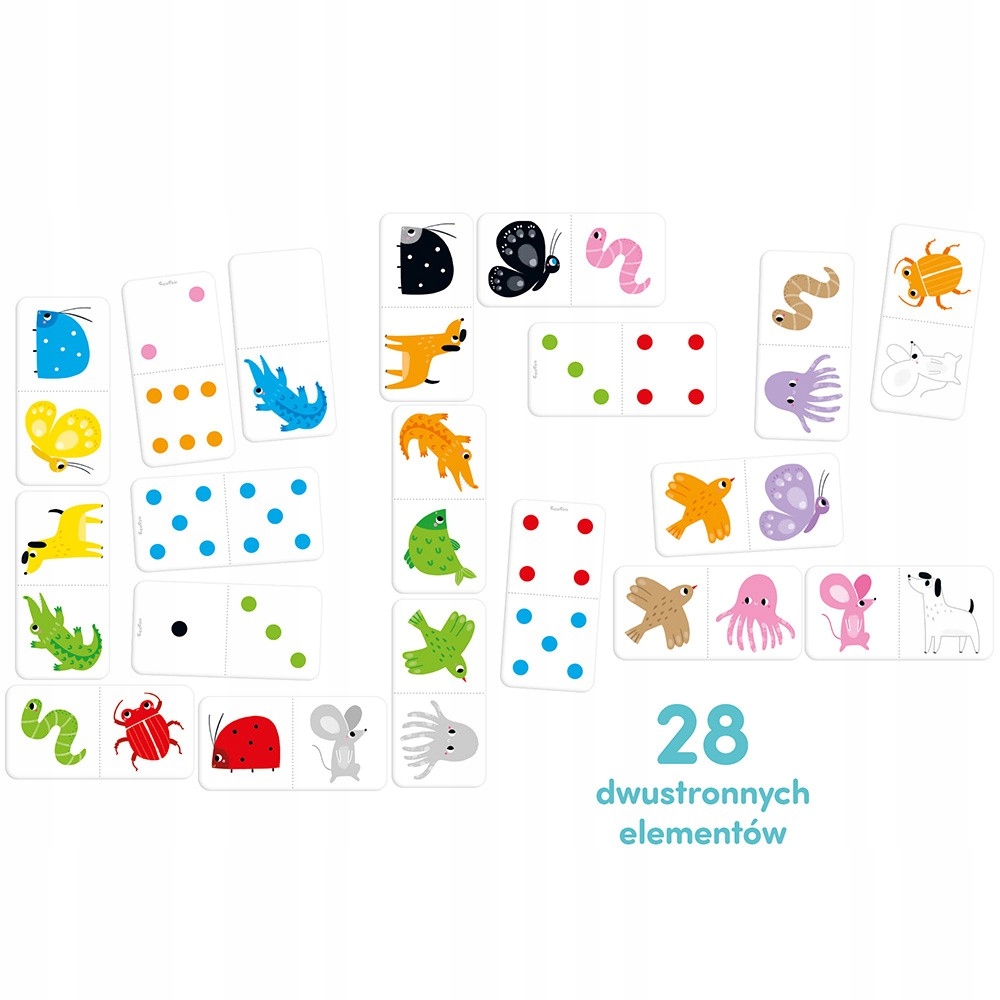 Это одновременно головоломка и игра, которая растет вместе с детьми. Элементы можно комбинировать по-разному: с цветами, животными, цветами и животными или традиционными глазами. Играйте вместе в классическое домино или комбинируйте красочные крупные элементы, изучая цвета и тренируя наблюдательность и логическое мышление. Регулируйте уровень сложности игры в соответствии с развивающимися навыками детей. Множество идей для развивающих игр вы найдете в руководстве, входящем в комплект!