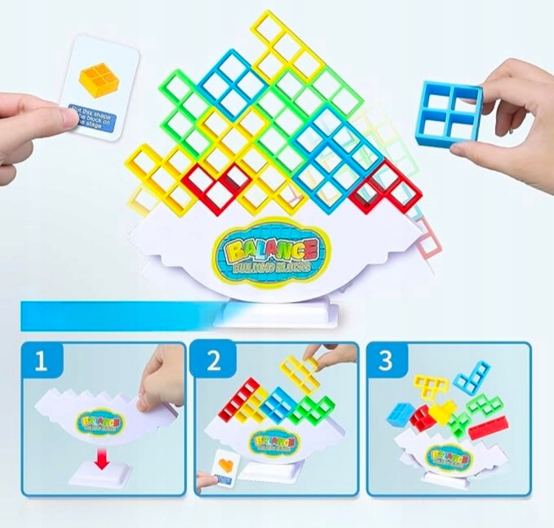 Задача игроков — разместить блоки на платформе так, чтобы башня не наклонялась и не падала в одну из сторон.
