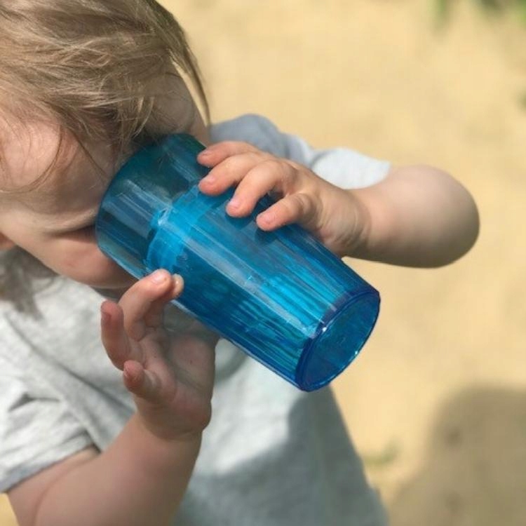 - Использование инновационной вставки гарантирует, что струя напитка всегда равномерная, независимо от угла наклона, что помогает научиться пить из открытого сосуда;