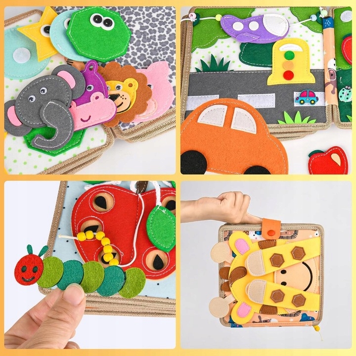 Книга изготовлена из мягкого фетра, не имеет острых краев и удобна для детей. Вы можете быть уверены, что материалы нетоксичны и долговечны, даже если ваш ребенок интенсивно ими пользуется. Вам не придется беспокоиться о повреждениях – эта книга переживет множество приключений. ☀️