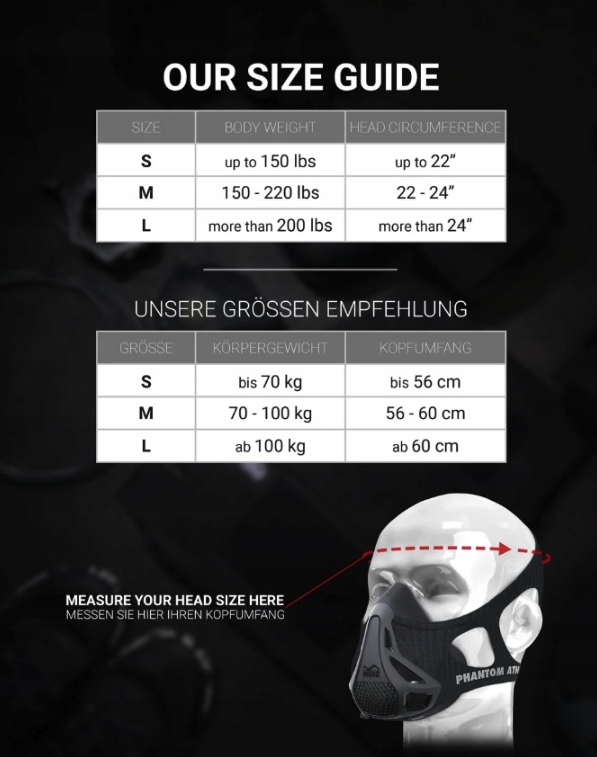 Маска при фантомной тренировке оснащена запатентованной системой PRS, которая позволяет переключать PRS. необходимость снять маску. Система предлагает 4 уровня сложности: от начинающего до экстремального, что позволяет постепенно увеличить интенсивность тренировок.