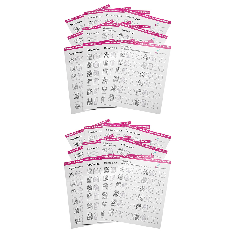 🌈 На выбор имеется 24 листа с различными рисунками для тренировки ногтей.