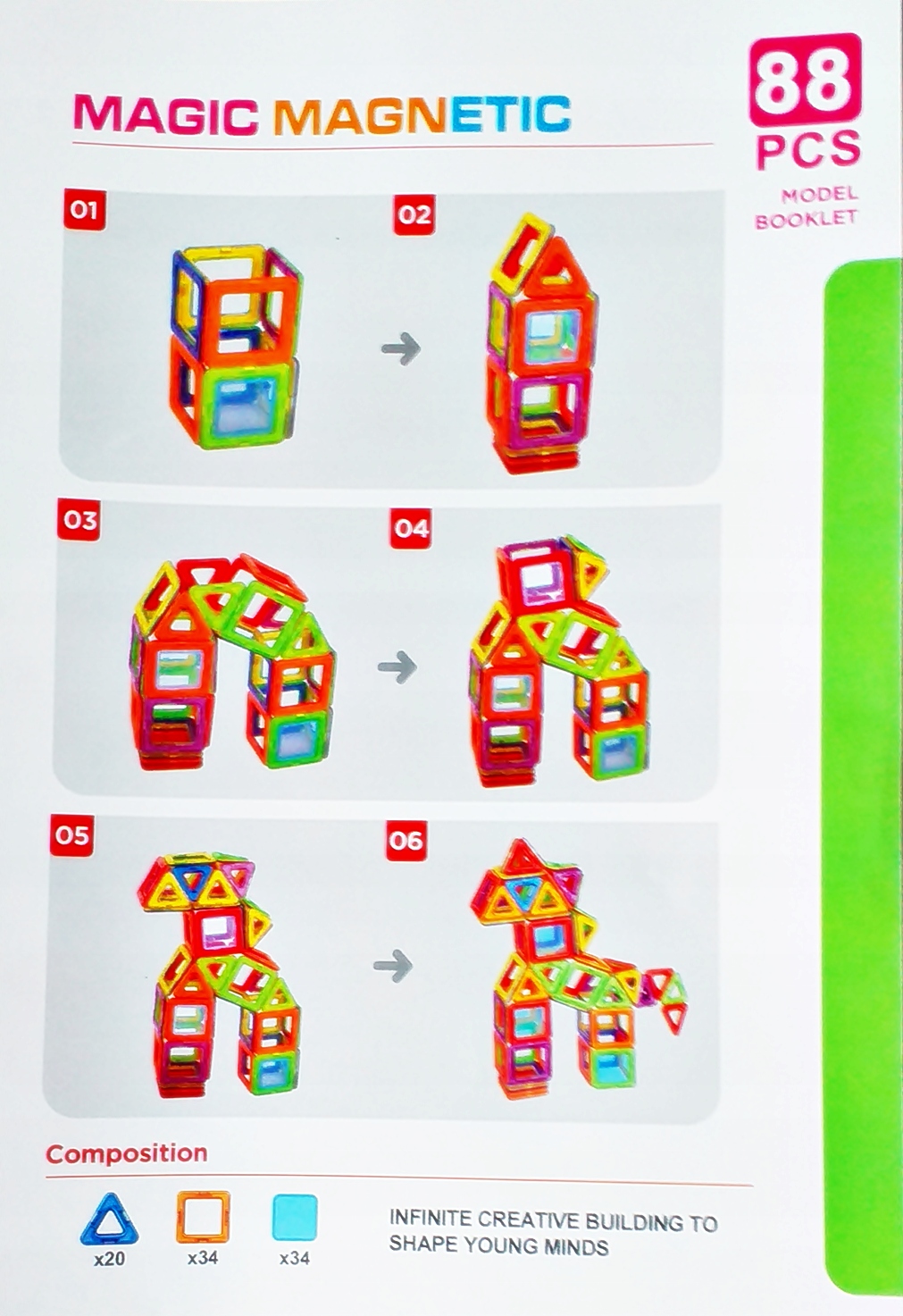 УЧЕБНЫЕ МАГНИТНЫЕ БЛОКИ для детей 88 шт GRAT
