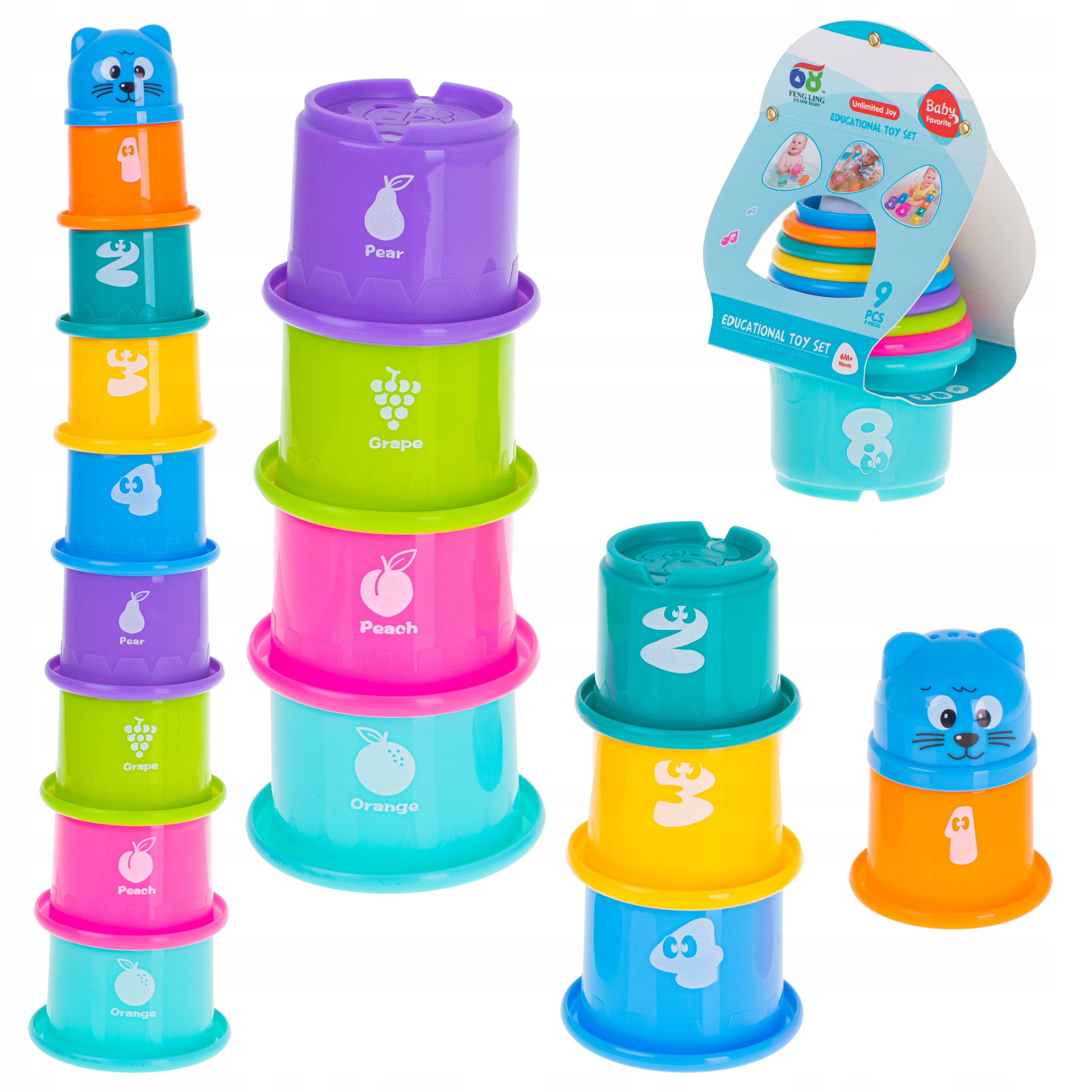 Развивающие стаканчики, башня, пирамидка, цифры и фрукты