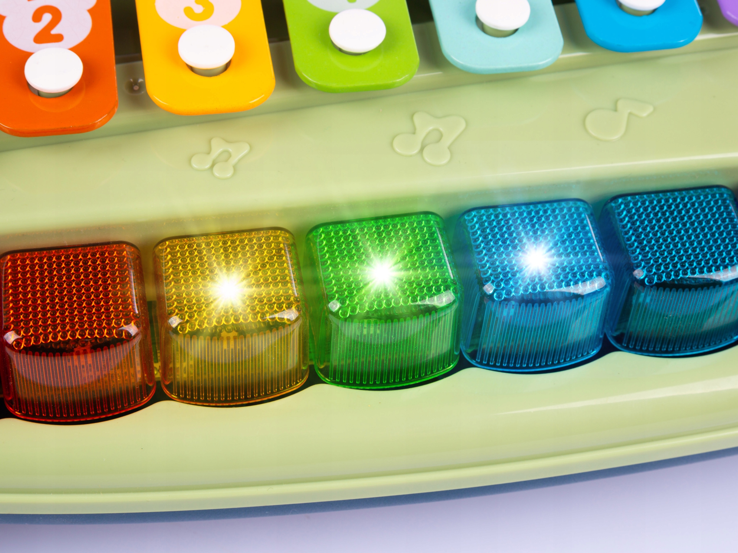 8-тональные тарелки для фортепиано и фортепиано в одном позволяют учиться и доставлять массу удовольствия. Во время исполнения мелодии вы можете играть на тарелках или клавиатуре. Английская версия.