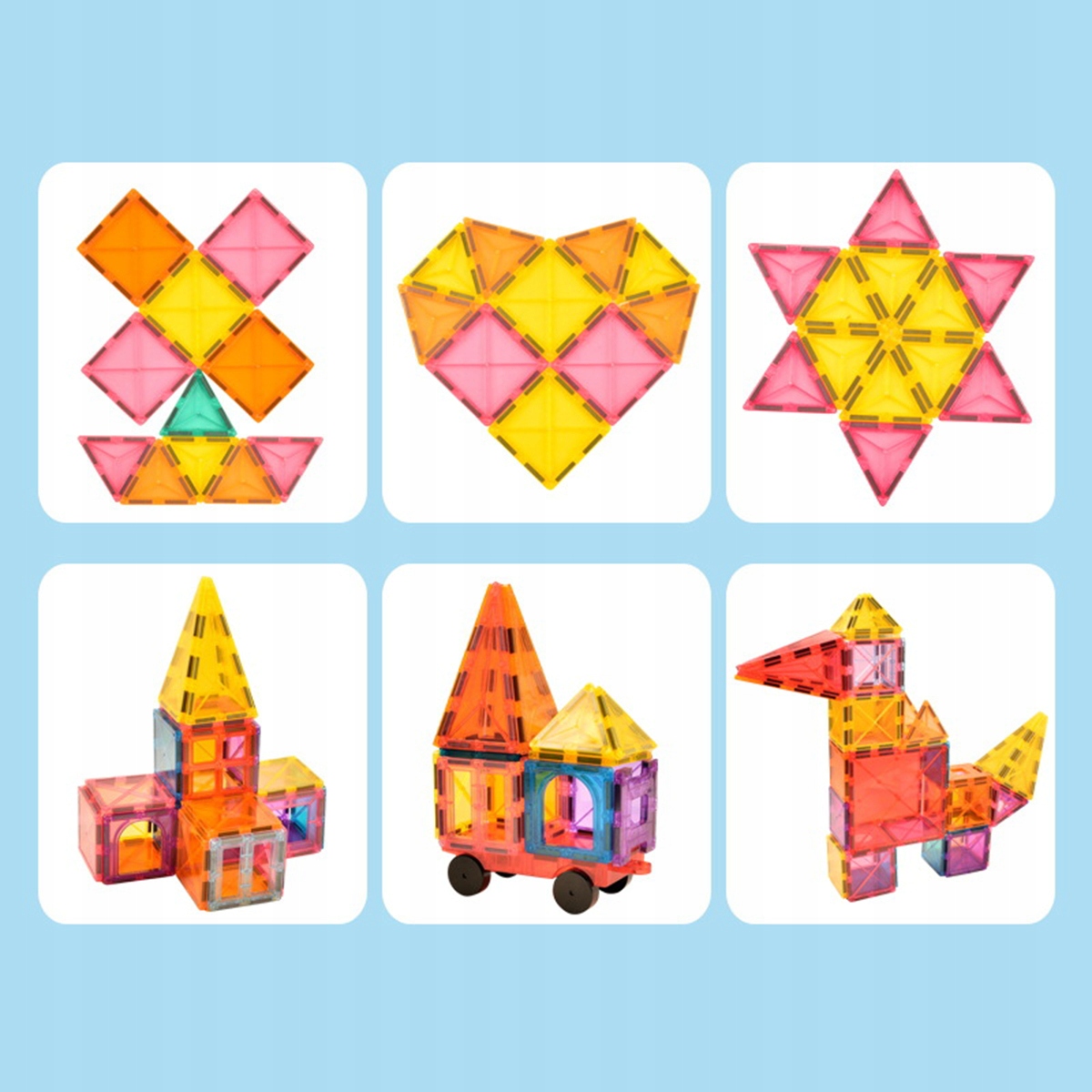 Набор магнитных строительных кубиков из 100 предметов. Дети могут полностью раскрыть свое воображение с помощью нашего набора магнитных строительных кубиков, состоящего из 100 предметов. От маленьких домиков до больших замков – возможно всё! В набор также входят два магнитных транспортных средства, которые оживляют конструкции. Универсальная игрушка для маленьких строителей, гарантирующая много часов удовольствия.