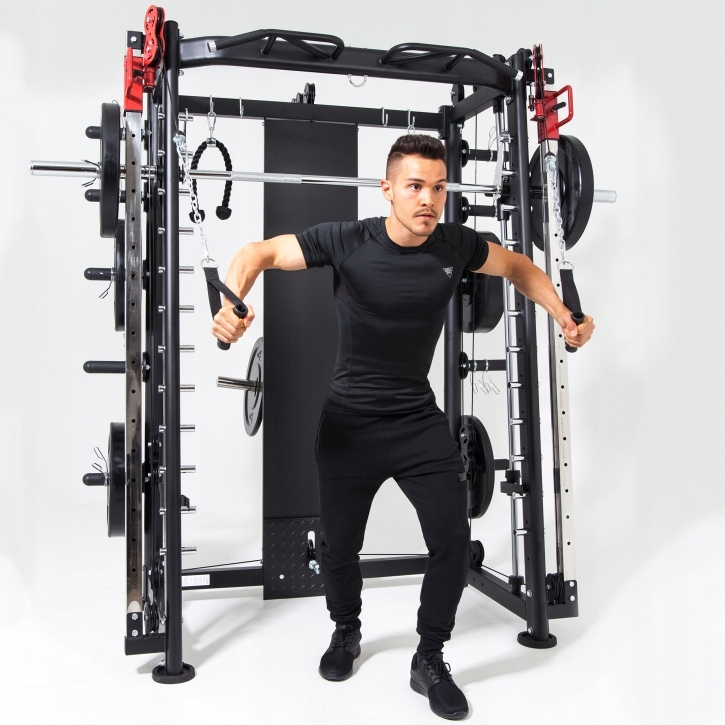 Тренажер Смита GORILLA SPORTS благодаря своей стальной конструкции обеспечивает устойчивость и безопасность во время тренировок.