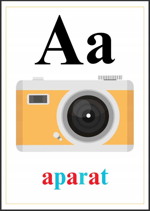 ➡️ Иллюстрации и подписи - напр. A — камера, F — печать, Ż — лягушка