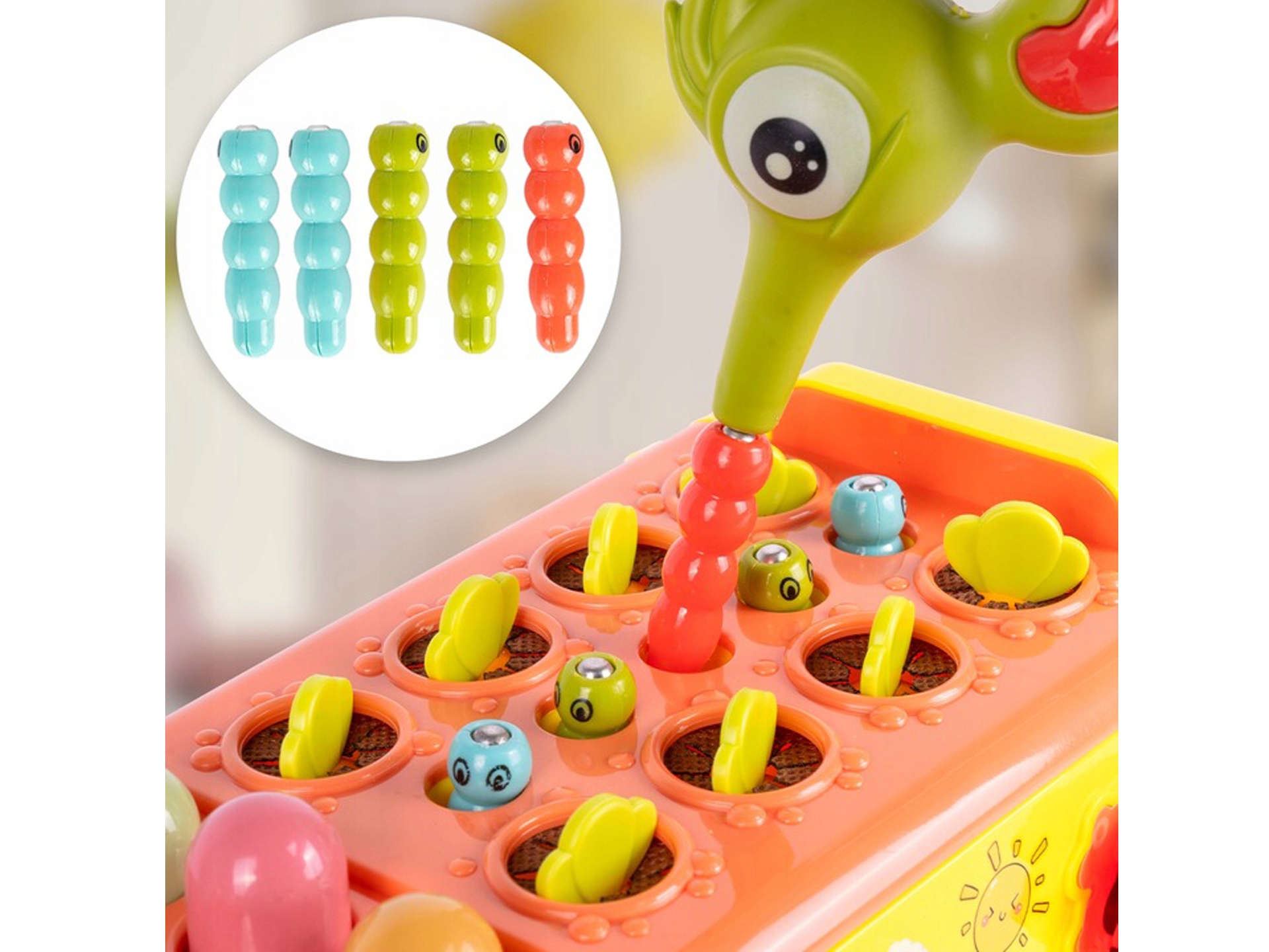 Ребенок также может тренировать координацию рук, доставая и помещая маленькие морковки в специальные отверстия.
