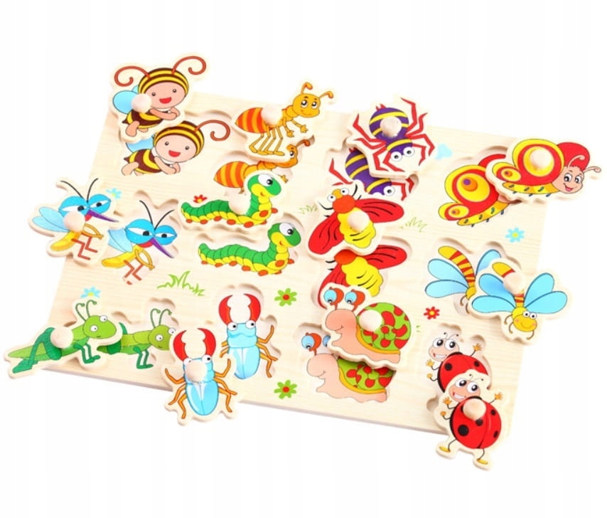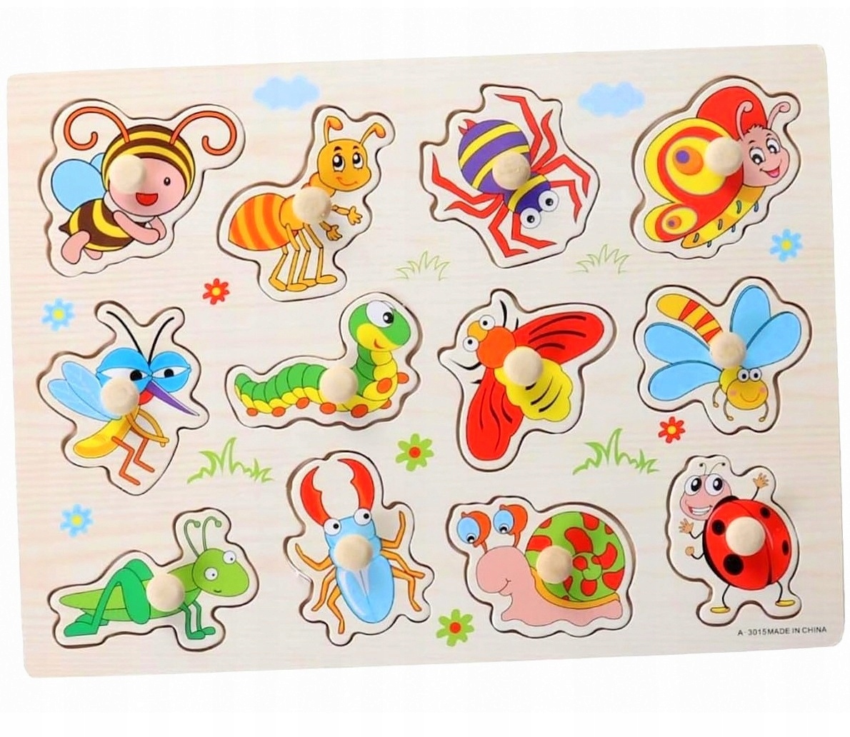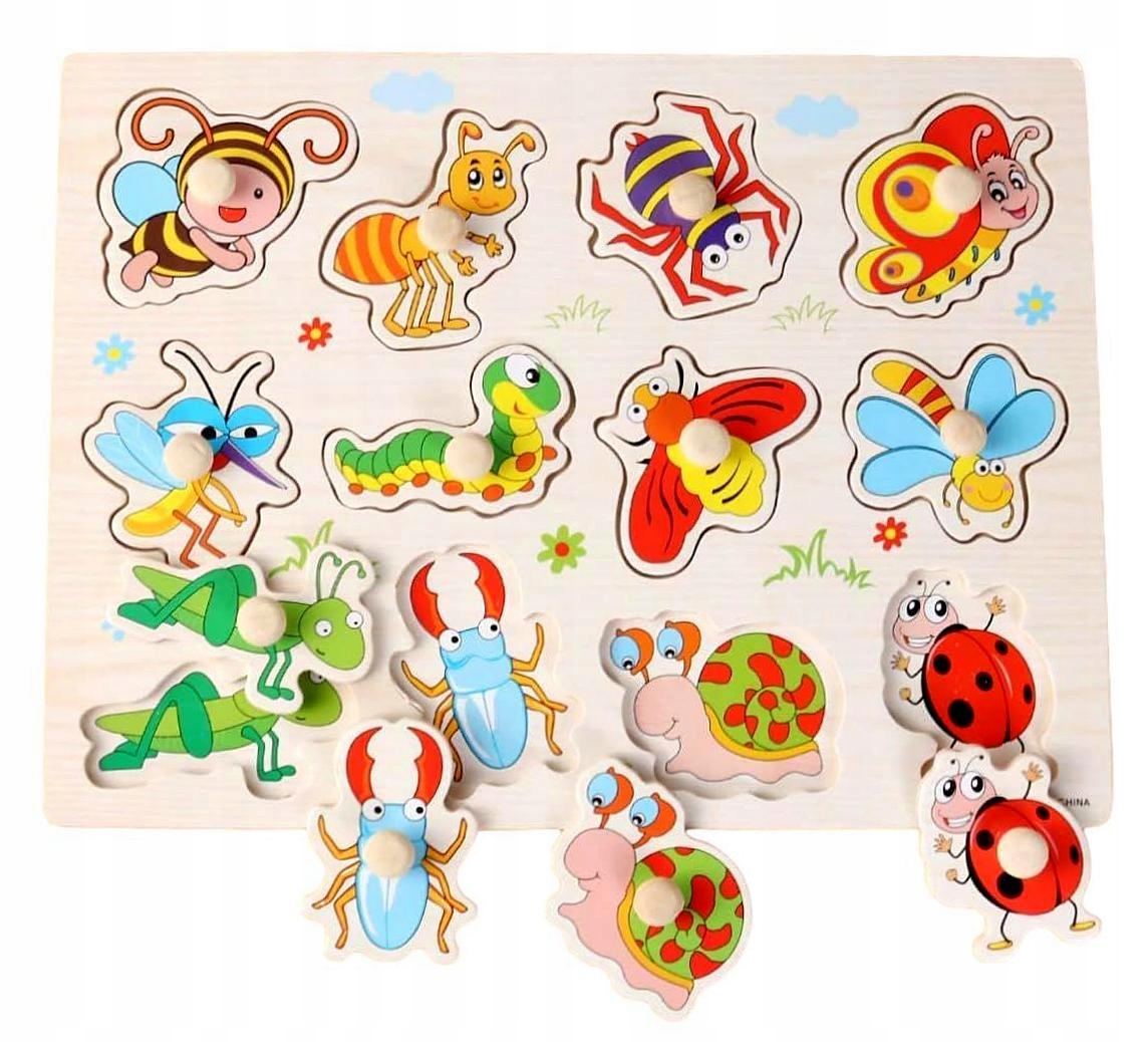 УЧЕБНАЯ ДЕРЕВЯННАЯ ПАЗЛ-ПАЗЗЛ С НАСЕКОМЫМИ-БАБОЧКАМИ