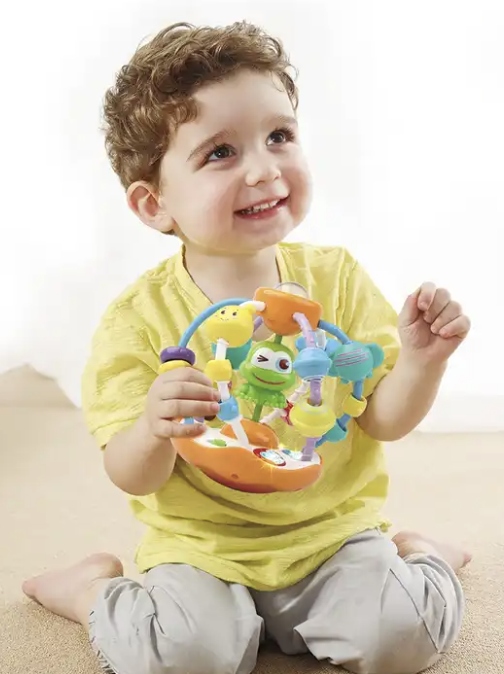 Милая лягушка радостно мигает, милый шарик с бусами, которое можно крутить, крошечное безопасное зеркальце застенчиво соблазняет, а веселые звуки животных, мелодии, цвета и свет!