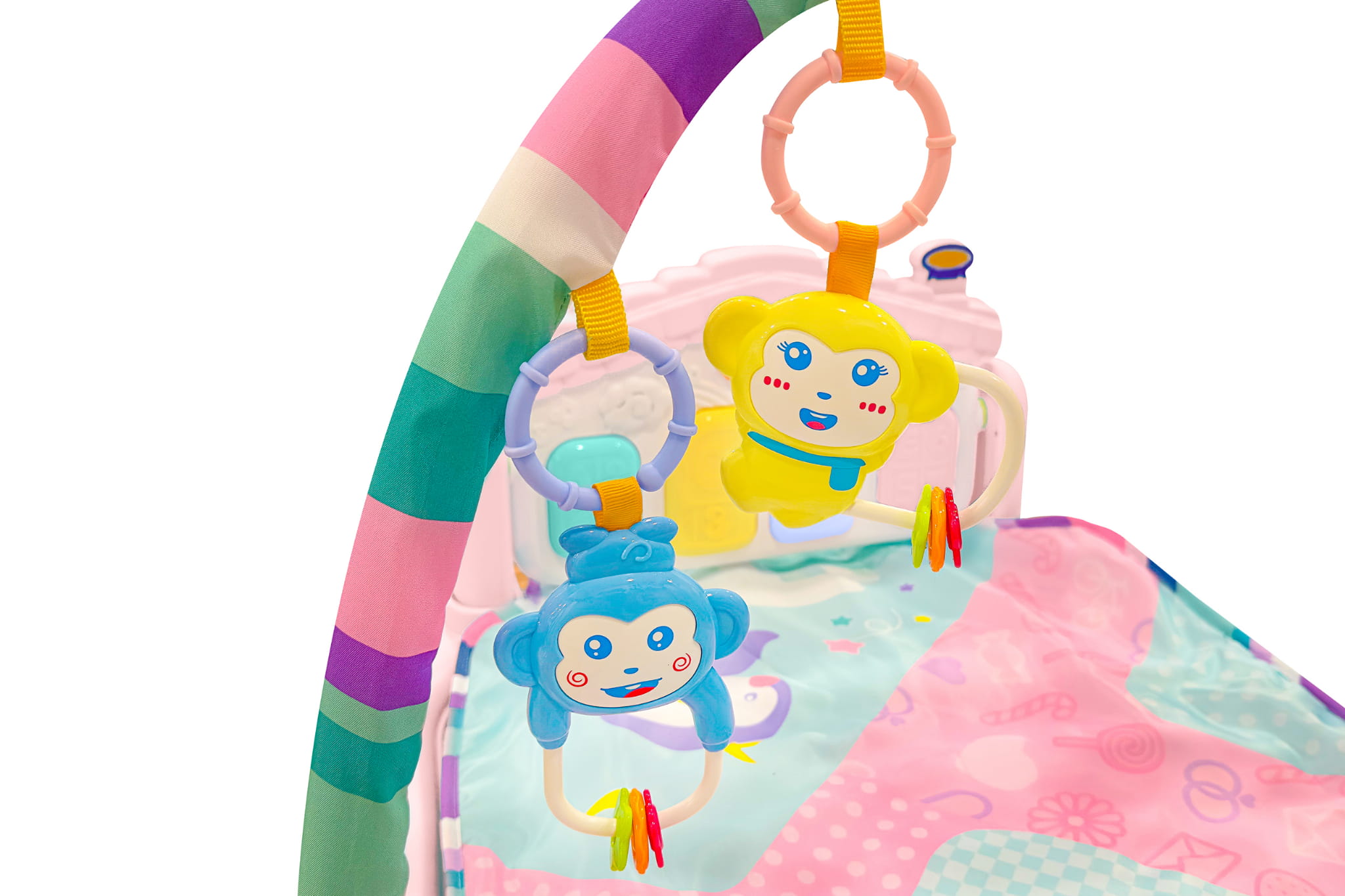 - Теперь ребенок может играть на пианино и играть с погремушками.