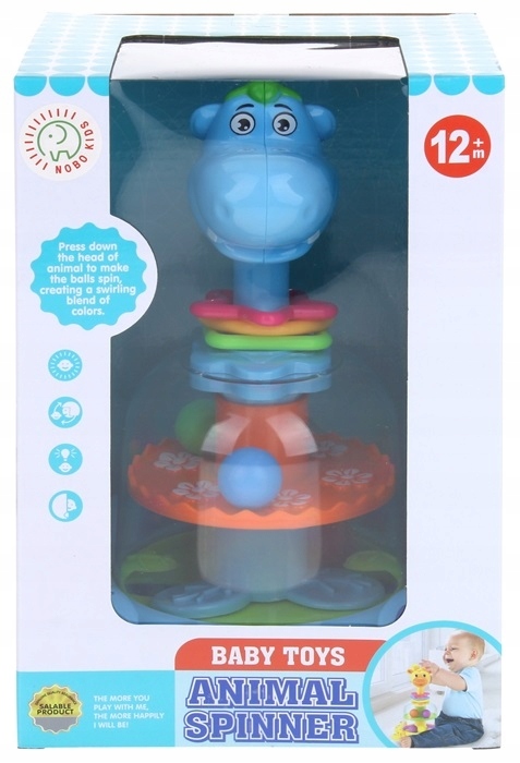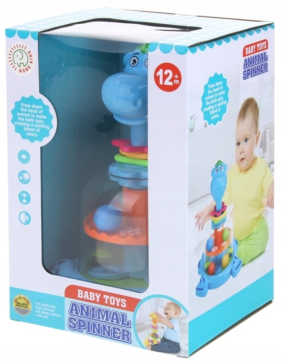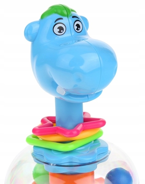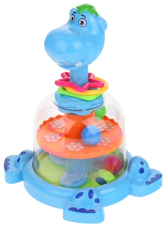 Красочный волчок с шариками в форме бегемота, благодаря которому ребенок попадет в круговорот веселья! Запустите волчок, нажав на голову животного, и разноцветные шарики внутри игрушки начнут вращаться, как на карусели. Идеальная игрушка для развития мануальных навыков у самых маленьких детей.