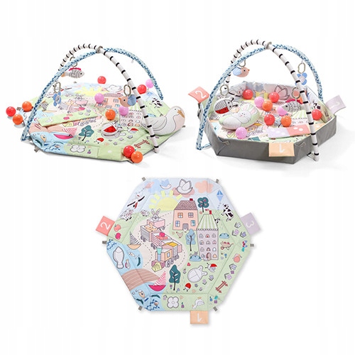 - Fun 3 в 1 - мы разработали наш образовательный коврик, чтобы расти вместе с вашим ребенком. Все, что вам нужно сделать, это поднять стороны коврика, и он превратится в сухой бассейн, в который вы добавите красочные шарики, прикрепленные к набору. Когда ваш ребенок станет старше, коврик станет игровым ковриком.