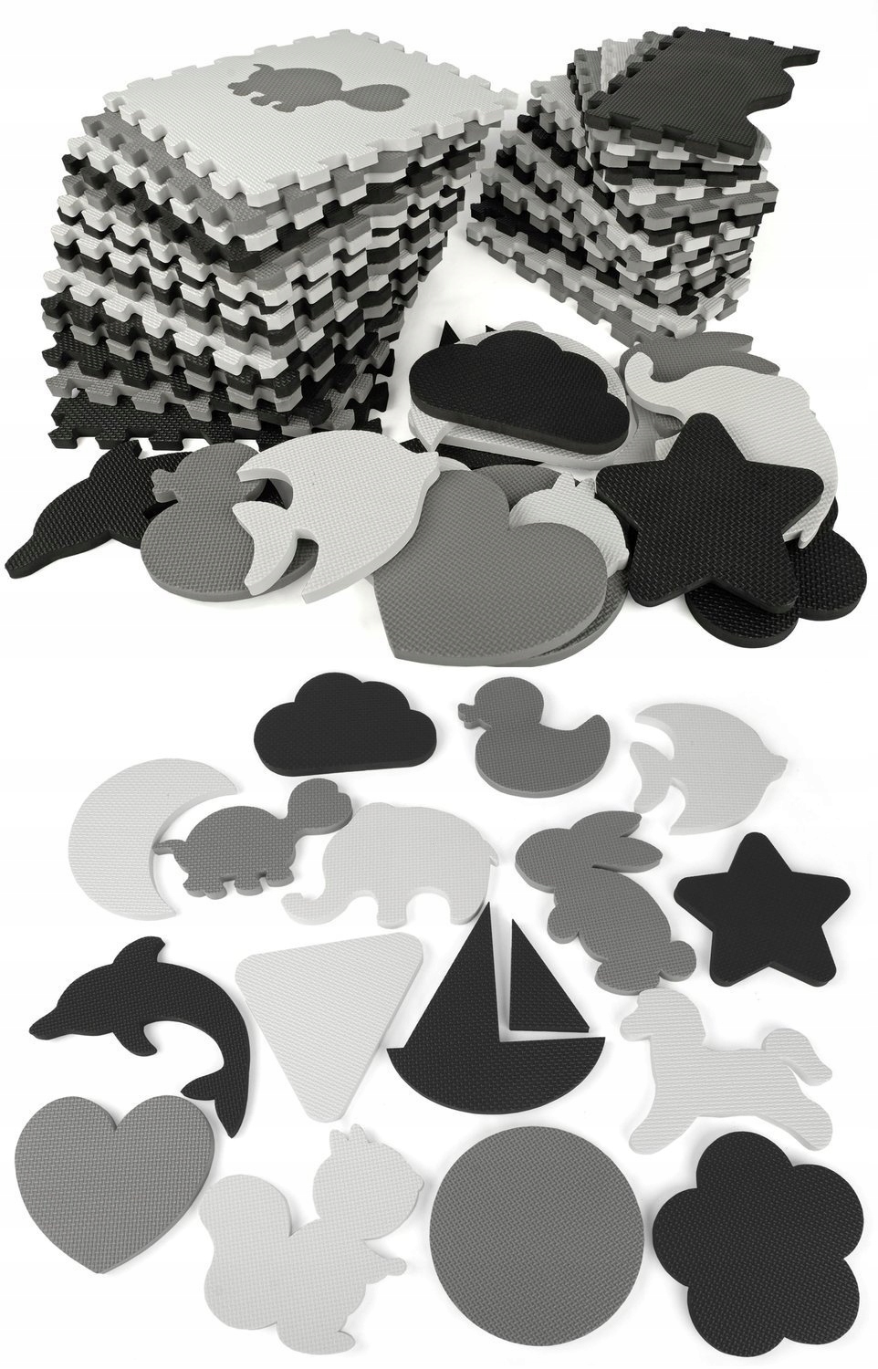 Вы также можете строить конструкции из пенопласта, кубы, башни или пирамиды. Пазлы можно комбинировать на многих уровнях и в любой конфигурации. Пазлы очень мягкие и приятные на ощупь. Одна сторона имеет интересный узор на поверхности, другая гладкая.