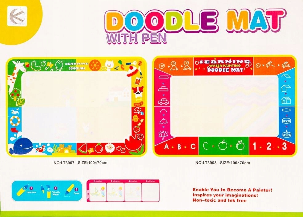 Набор для рисования водой — это не только развлечение, но, прежде всего, идеальная идея для поддержки развития вашего малыша на разных этапах. Коврик развивает воображение и стимулирует творческие способности, обеспечивая при этом радость и веселье. В комплект входят специальные многоразовые ручки, которые при наполнении водой не образуют грязи. После высыхания коврик готов к следующей игре и созданию различных красочных рисунков и узоров.