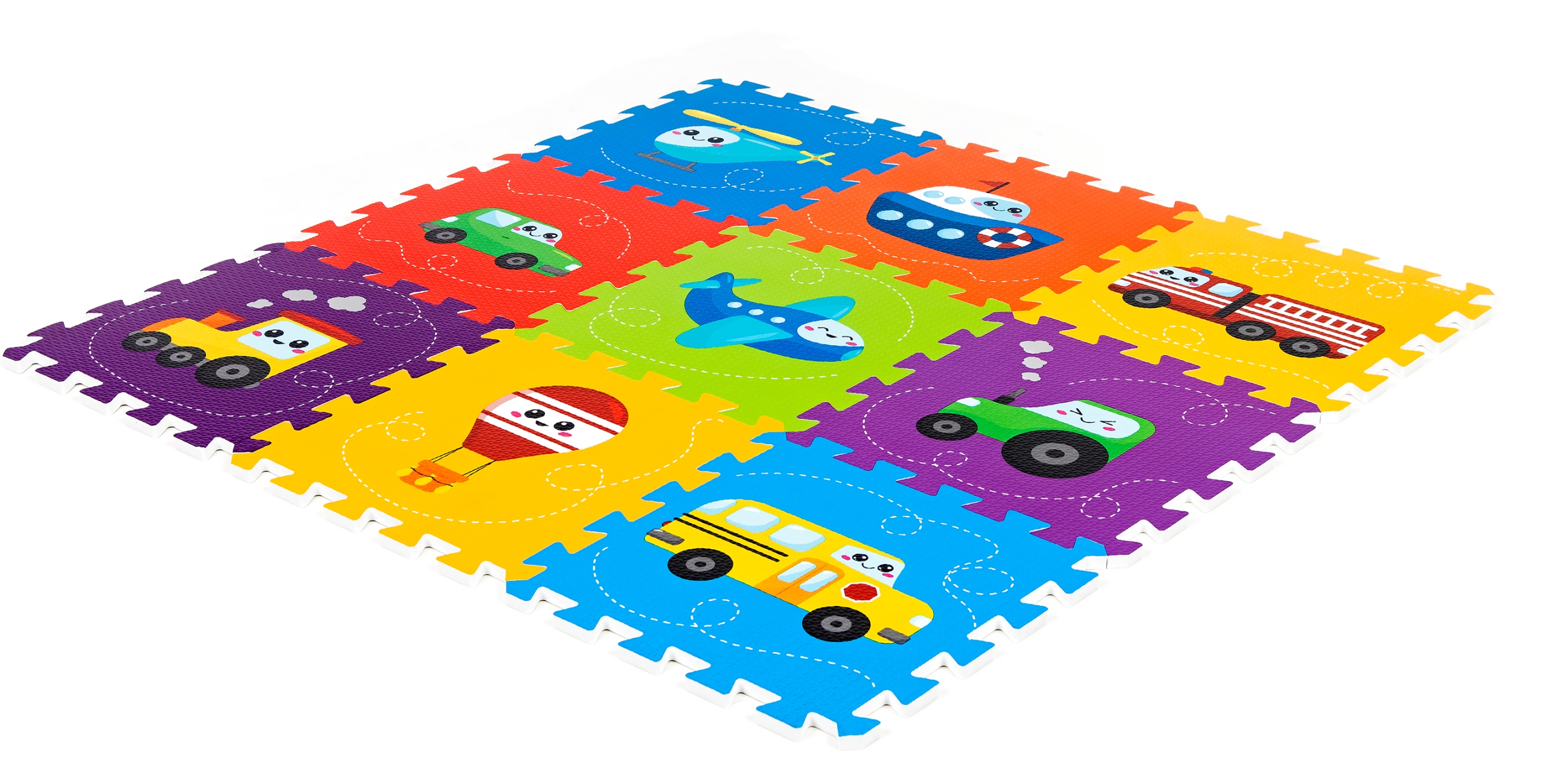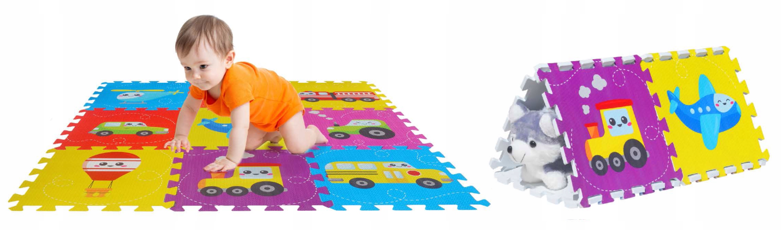НАВЧАЛЬНИЙ Килимок-пазл дитячий ТРАНСПОРТ товстий СКЛАДНИЙ 9 шт.