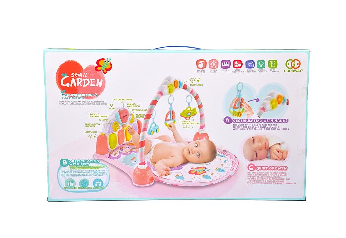 Развивающий музыкальный коврик с фортепиано, розовый, мотив «Маленький садик».