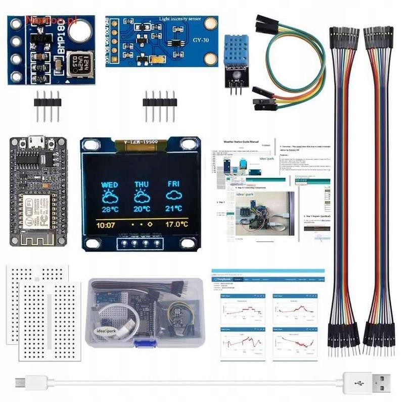 ✅В комплекте используются датчики DHT11, BMP180, BH1750FVI для сбора данных о температуре, влажности, атмосферном давлении и освещенности. Датчики требуют независимой пайки контактов (контакты в комплекте)