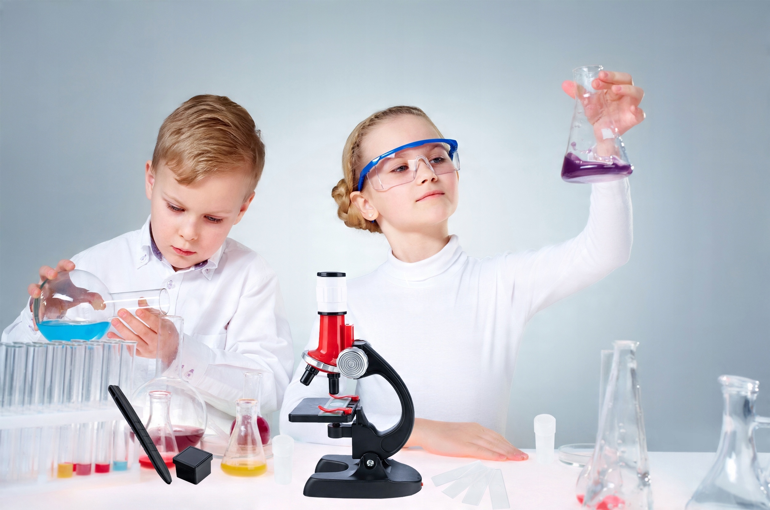 Микроскоп с аксессуарами и светодиодной подсветкой – отличный подарок для маленьких «ученых». Благодаря этому ваш ребенок узнает, как выглядят окружающие нас вещи, но в микромасштабе. Вы узнаете, как выглядит песчинка или соль, лист, палец, насекомое, волос и многое другое при очень большом увеличении. Это, безусловно, будет чудесным открытием. Игра с микроскопом может стать интересным знакомством с такими областями науки, как биология, химия, природа и многими другими. Это будет стимулировать воображение ребенка и развивать творческие способности, что впоследствии может привести к увлечению и хобби, а также «откроет разум» и пробудит интерес к науке. Микроскоп также можно использовать в качестве учебного пособия, что непременно позволит вашему ребенку продемонстрировать дополнительные знания в школе.