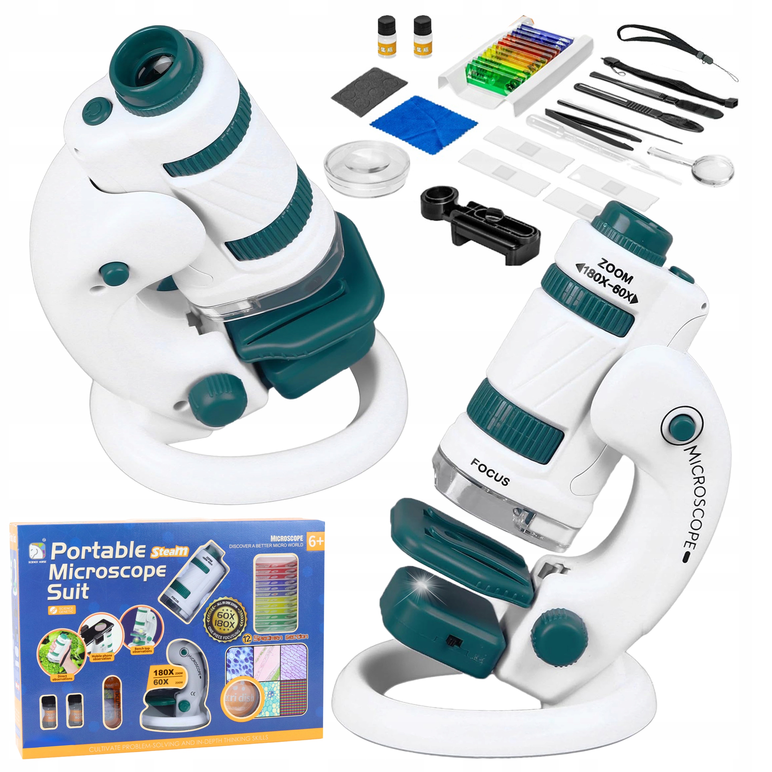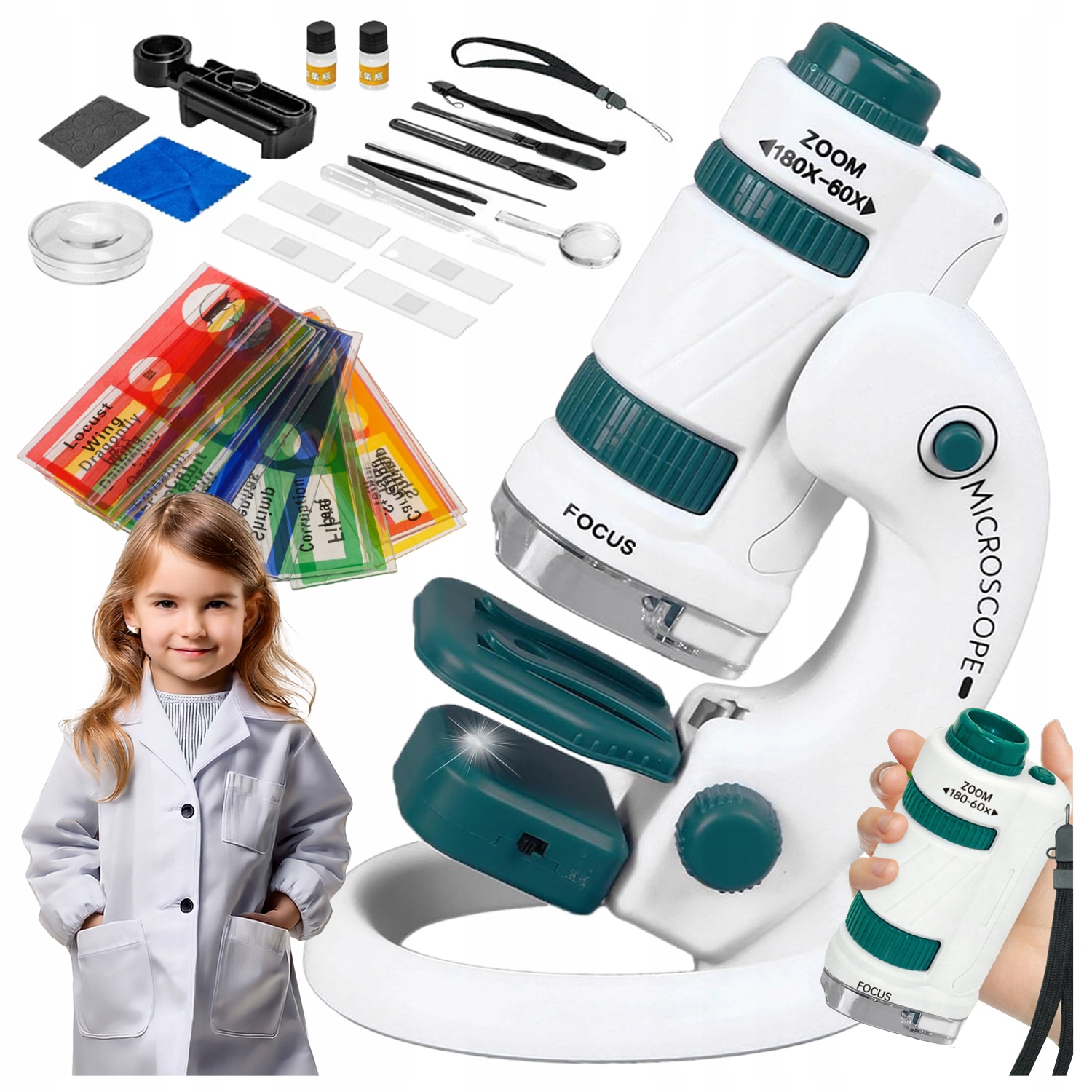 УЧЕБНЫЙ МИКРОСКОП ДЛЯ ДЕТЕЙ 3В1 ЛАБОРАТОРНЫЙ 60X/180X + АКСЕССУАРЫ