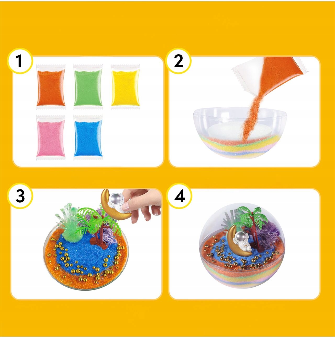 - Набор «Сделай сам» - сделай сам: b> Дети могут создать свой собственный мир, комбинируя различные элементы, такие как цветной песок, фигурки космонавтов и пальму.