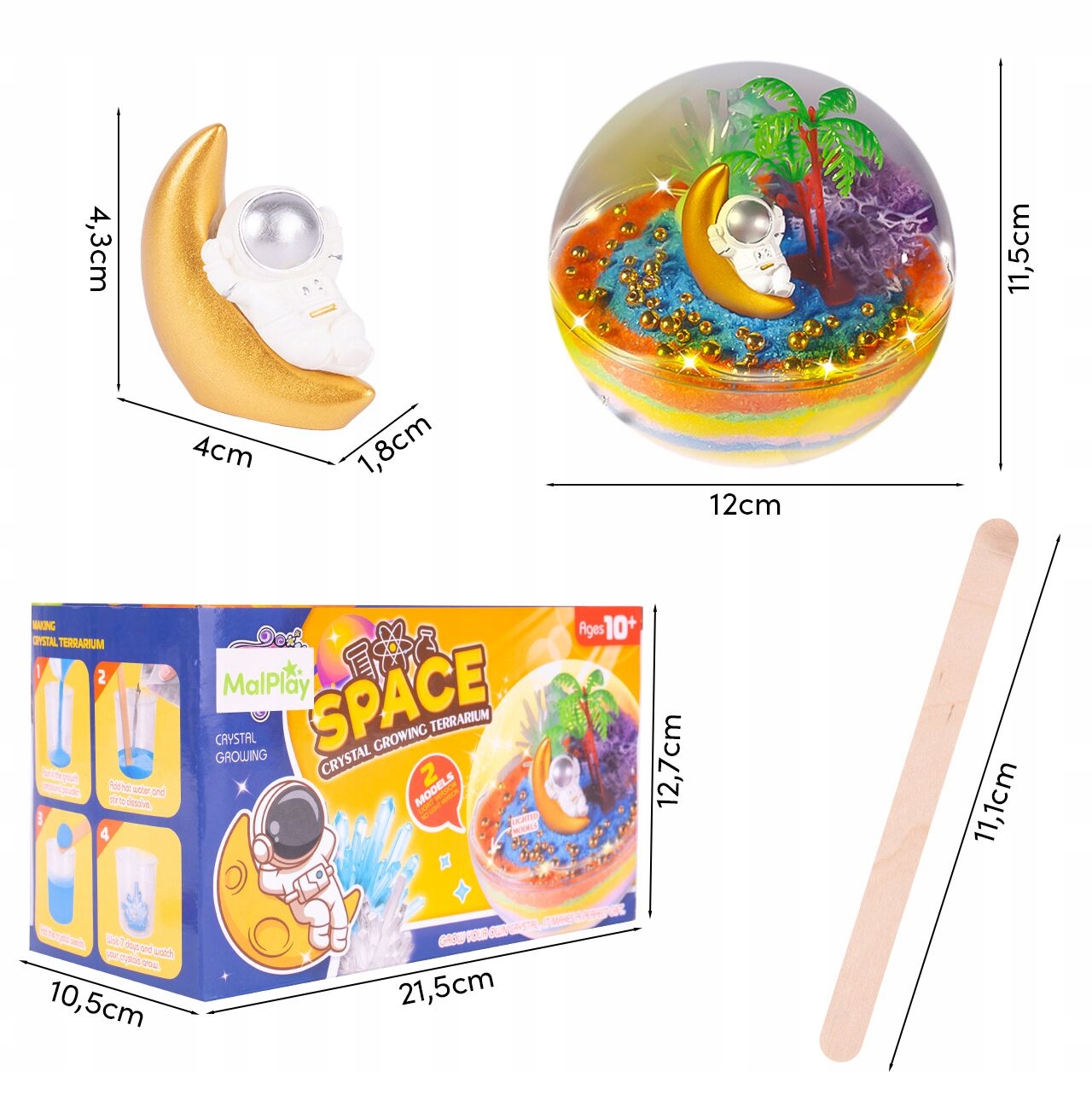 - Развивающая игра: Набор позволяет самостоятельно выращивать кристаллы в уникальном космическом террариуме, развивая воображение и знания о химических процессах. .