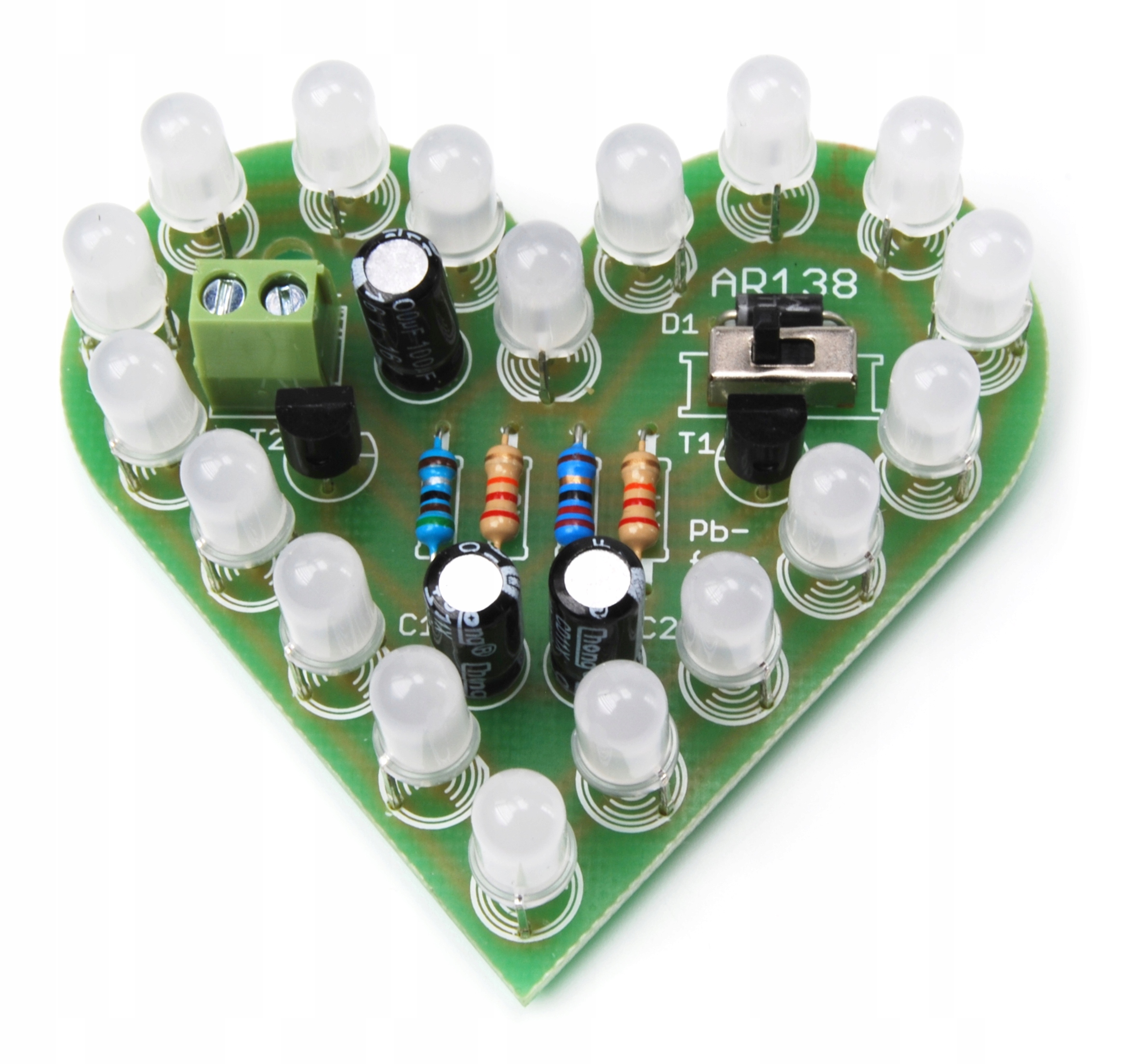 - AR138 Двухцветное светодиодное пульсирующее сердце - это очень впечатляющий любовный гаджет со светодиодным эффектом. Сердце, пульсирующее попеременно зеленым и красным светом, может стать прекрасным подарком близкому человеку на День святого Валентина, юбилей, день рождения или Женский день. Плата имеет форму сердечка, система имеет 18 больших двухцветных светодиодов.