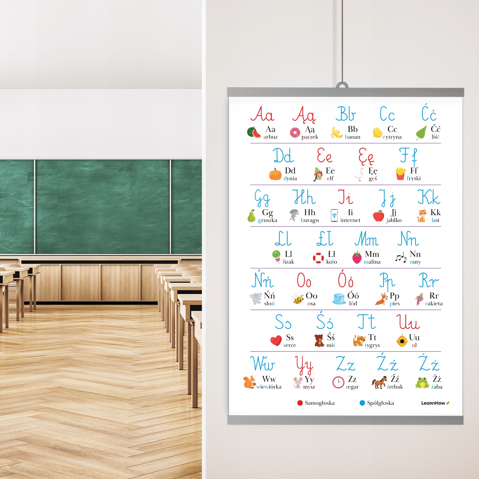 Отличный плакат для изучения алфавита, благодаря этому ребенок познакомится с польским алфавитом - письменными и печатными буквами. Плакат содержит полный польский алфавит - 32 буквы.