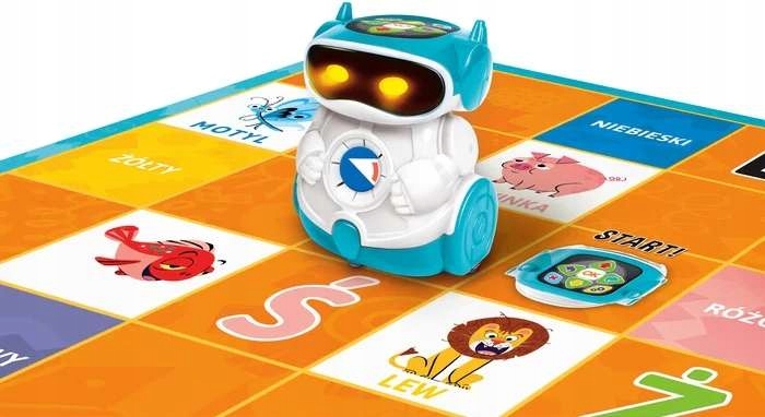 - Множество обучающих элементов - в комплект входит двусторонняя доска и карточки с заданиями. На одной стороне доски ребенок будет планировать маршрут робота среди букв, животных и цветов с помощью игральных карт, а другая сторона доски представляет собой челлендж со сложными маршрутами и препятствиями.