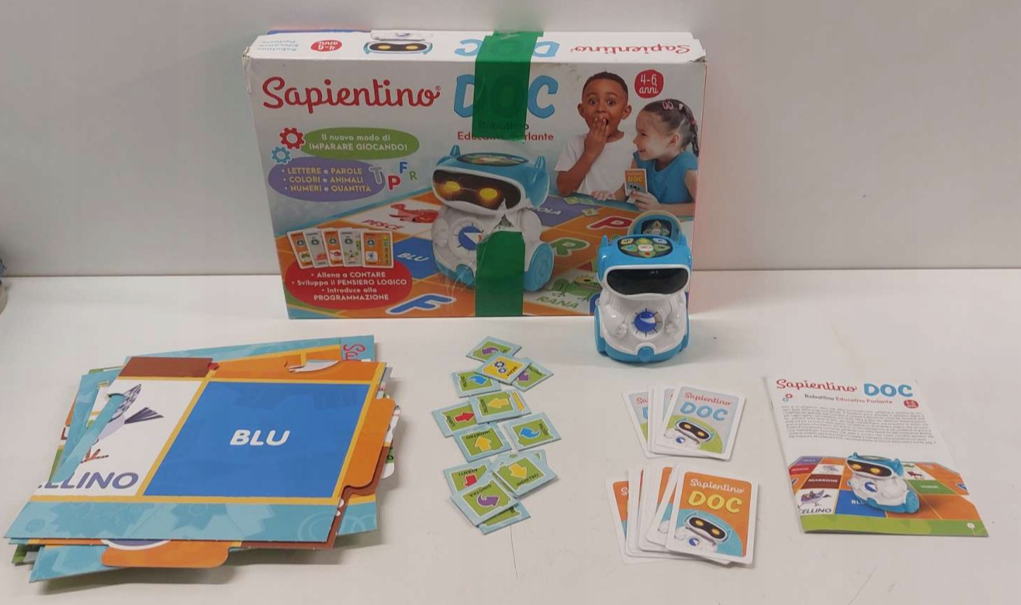 SAPIENTINO DOC: сопровождает детей в обучении, помогает им развивать логические навыки и навыки решения проблем, а также обучает буквам, цифрам, цветам и животным.