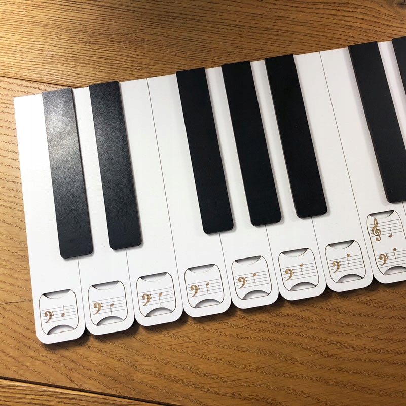 Представляем обучающее деревянное пианино для обучения расположению нот. В комплект входит фортепиано с клавишами с лазерной гравировкой и плитки с нотами в скрипичном и басовом ключах (15 штук). Размер фортепиано 53 см х 19 см. Комплект изготовлен из плиты HDF толщиной 3 мм.