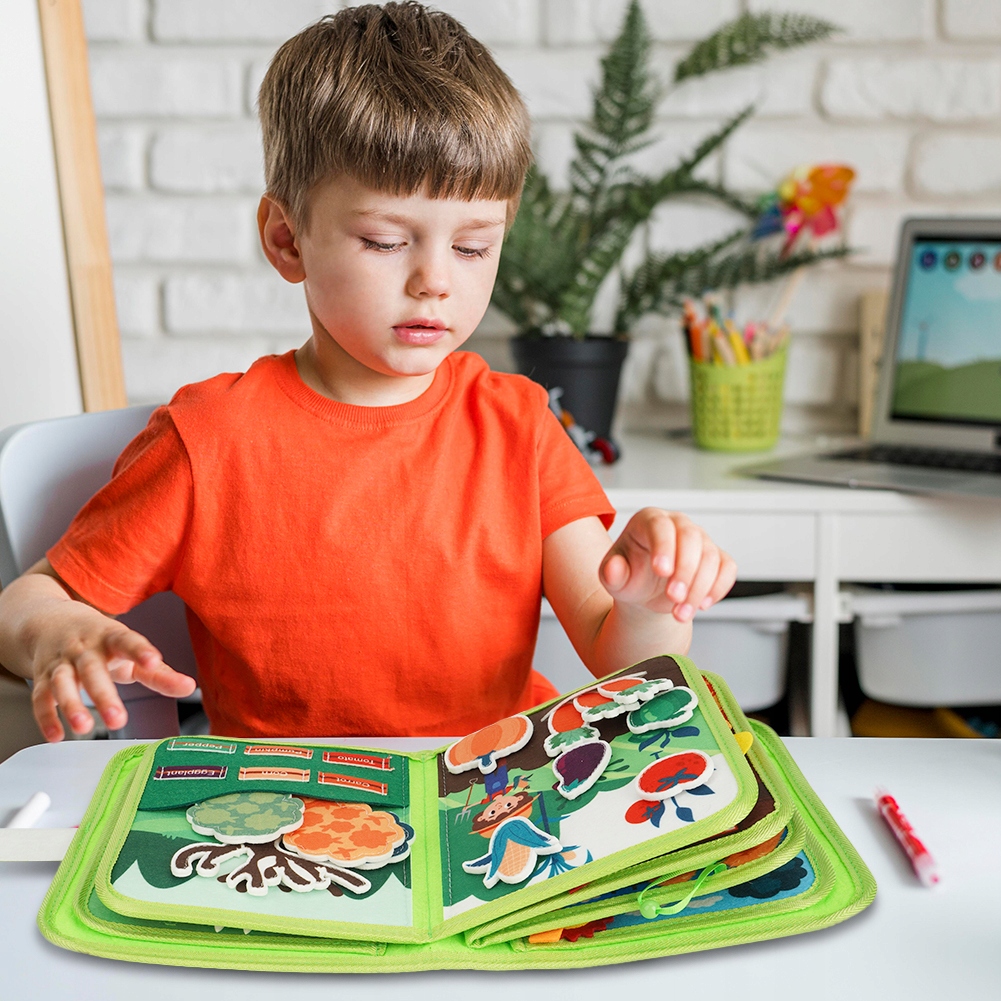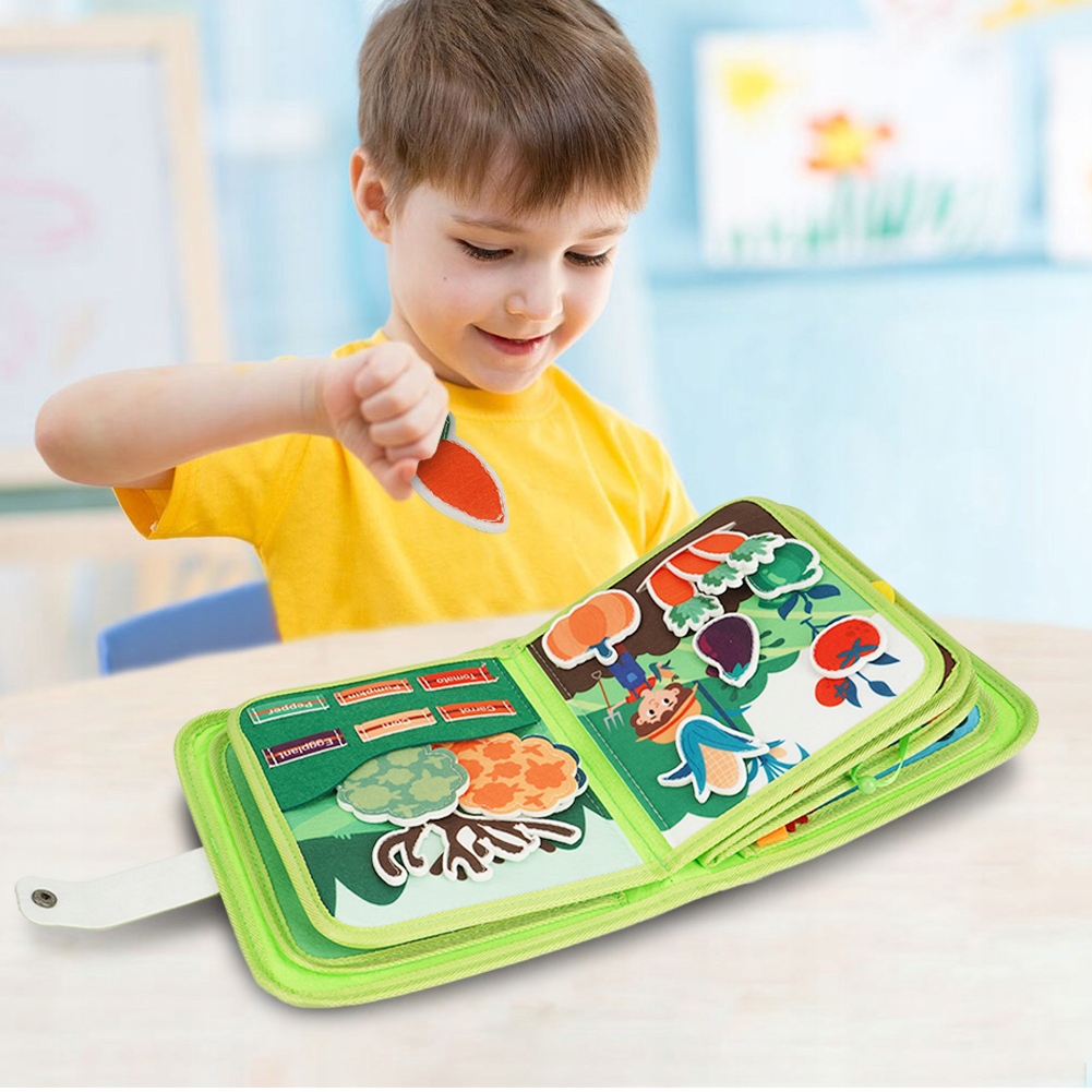 Книга для обучения навыкам Монтессори из фетра с интерактивными страницами