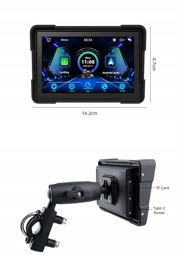 CarPlay Android Auto Мотоцикл Экран 5-дюймовый монитор с беспроводной навигацией