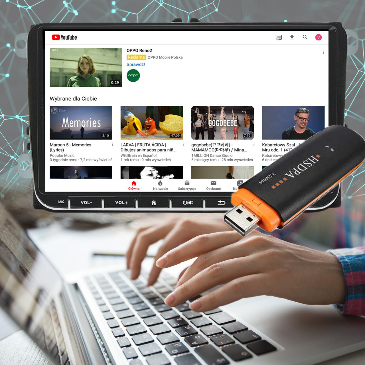 Благодаря встроенному GPS модулю и антенне, входящей в комплект, мы можем использовать любую навигационную программу в автомобиле, например AutoMapa, Igo, TomTom, MioMap и другие.