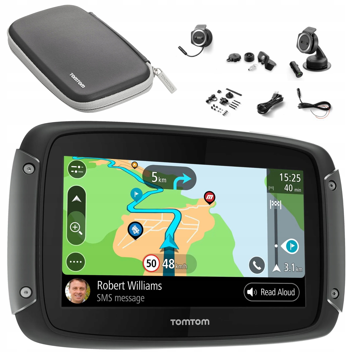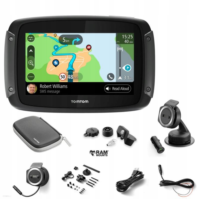 TomTom Rider 550 — надежный навигатор для мотоциклистов. Он сочетает в себе молниеносную производительность и необходимую долговечность (водонепроницаемый и противоударный дизайн IPX7). В комплект входит защитный чехол и автомобильный монтажный комплект с защитой от кражи, что делает его универсальным и безопасным выбором для каждого любителя двухколесного транспорта.