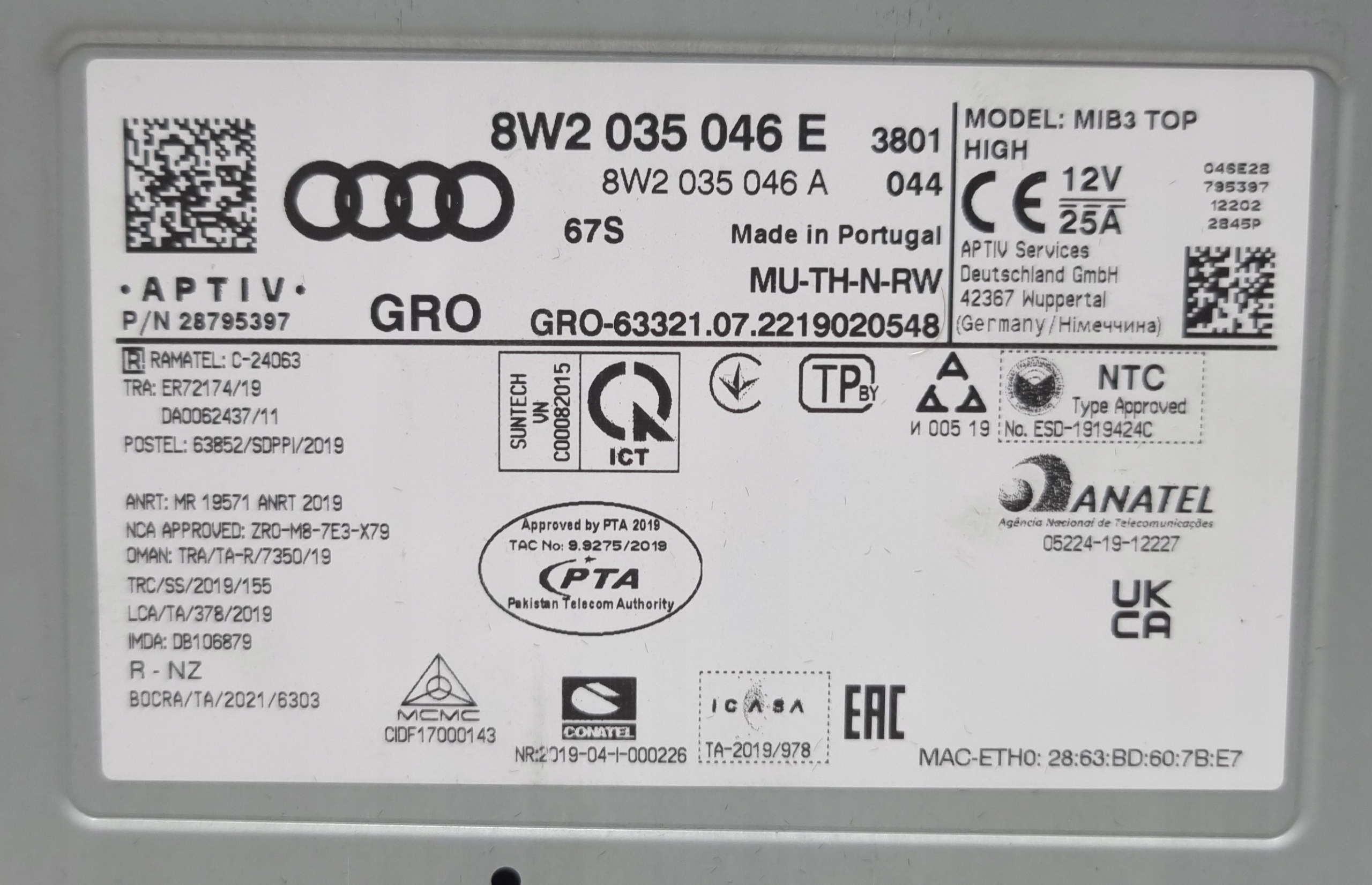 Навигация MIB3 Audi A4 B9 A5 8W LIFT 8W2035046E