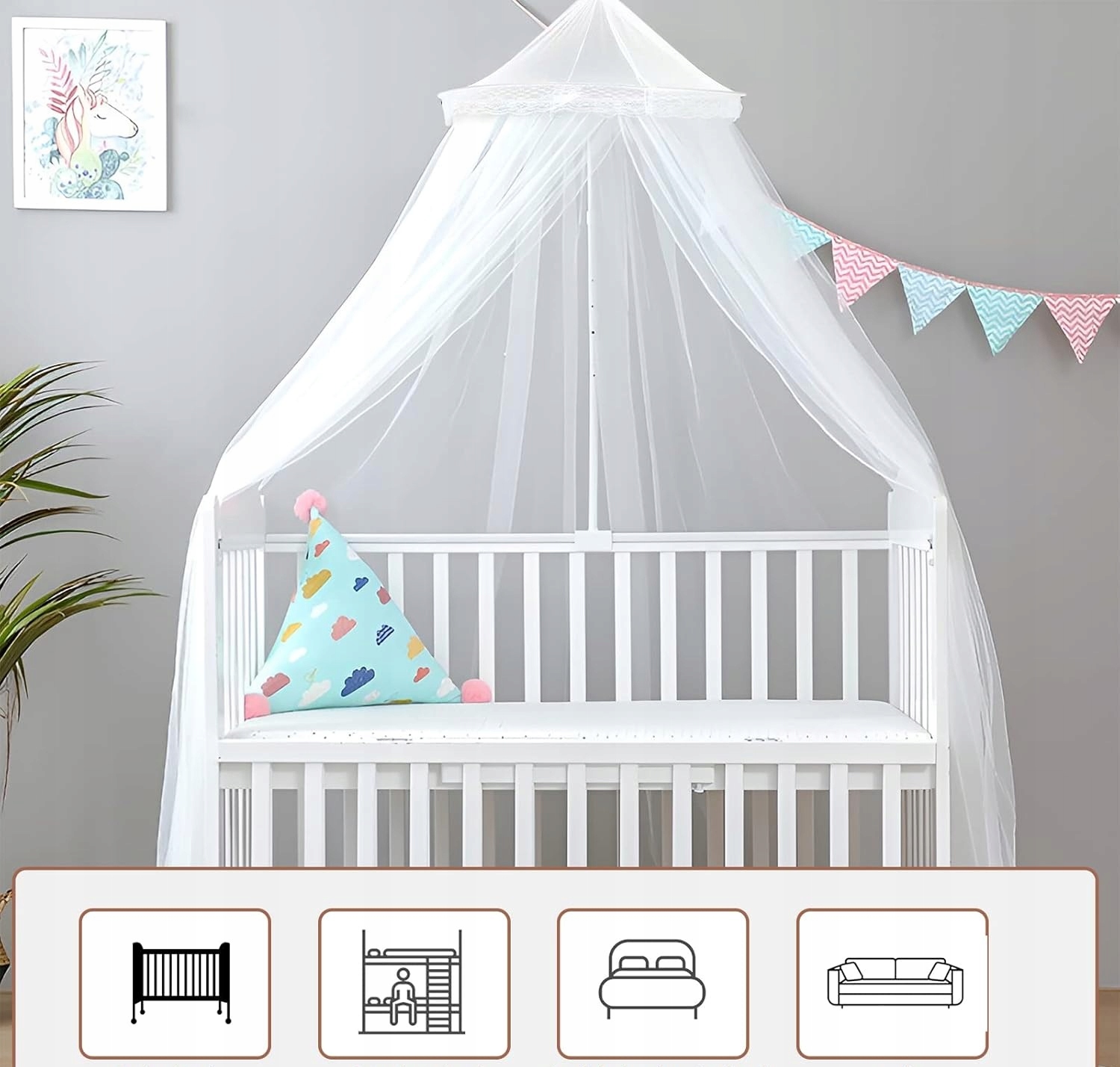 БЕЛАЯ КРЫШКА НАД КРОВАТЬЮ ЗАЩИТА ОТ НАСЕКОМЫХ НА УСЛОВИЯХ 60Х250Х1200СМ