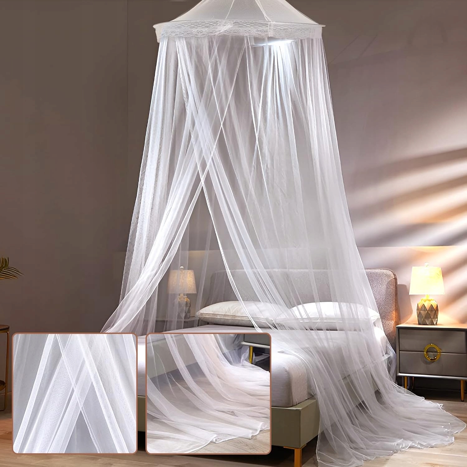 Москитная сетка для кровати: Москитная сетка имеет высоту 2,5 м и окружность 12 м, что делает ее подходящей для кроватей шириной 1,8-2 м. Благодаря москитной сетке вы сможете наслаждаться спокойным сном.