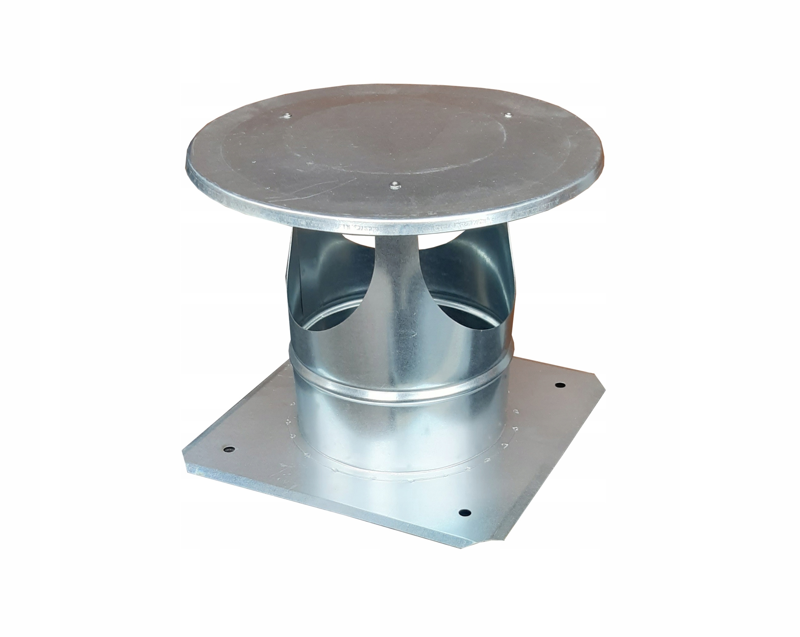 Изготовлена из оцинкованного листового металла. Использование заглушки предназначено для защиты внутренней части дымохода от атмосферных осадков, улучшения эстетики торца дымоходной системы и отпугивания потенциальных злоумышленников, например птиц.