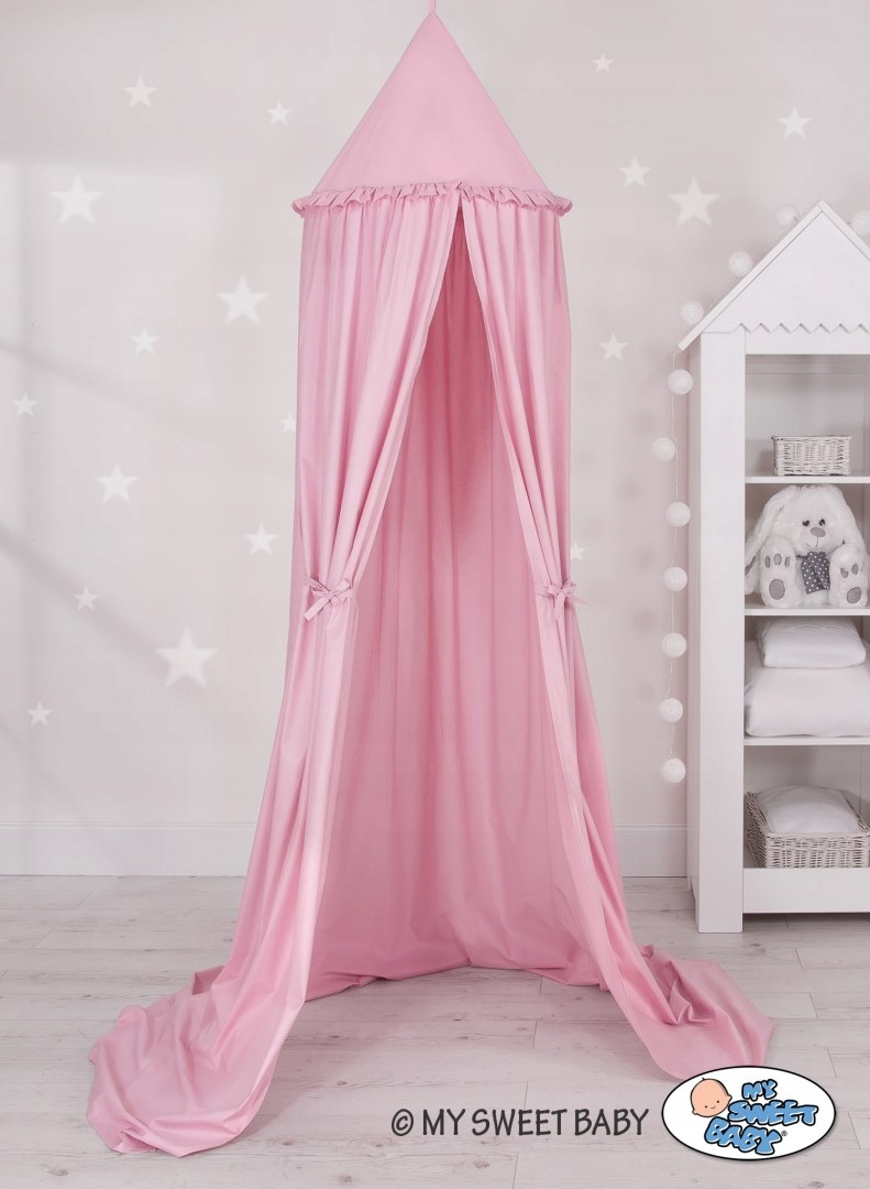 Впечатляющий подвесной балдахин, красивый элемент детской комнаты. Его можно использовать как оригинальное украшение детской кроватки. Он также может создать уютное место для игр. Подвешенный над детской кроваткой, он защитит от лишнего света и приглушит шум, создав внутри кровати уютное и безопасное место для отдыха. Навес легко крепится к потолку. Его длина составляет около 260 см, поэтому он может свободно лежать на земле, создавая идеальное укрытие и место для игр.
