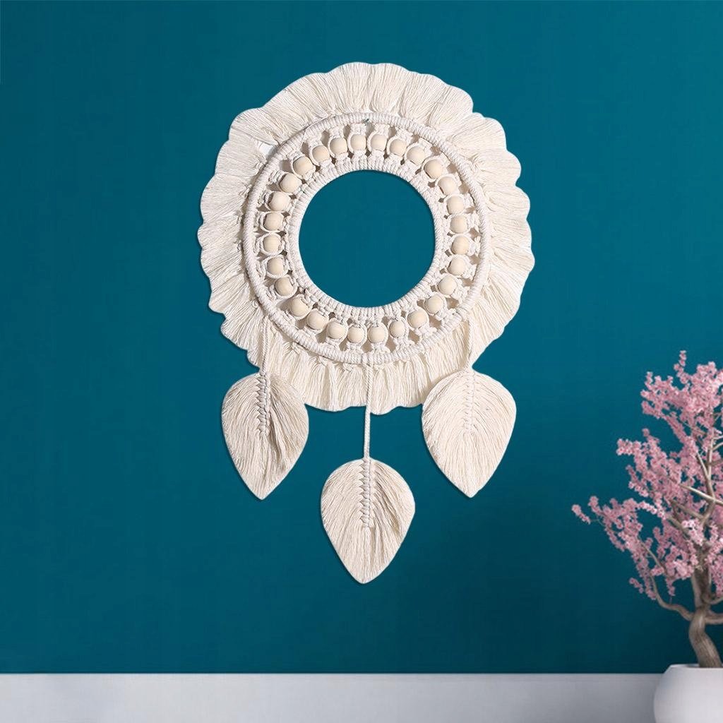 Круглое настенное зеркало в технике макраме, подвесное для дома, гостиной, спальни, прихожей, листья