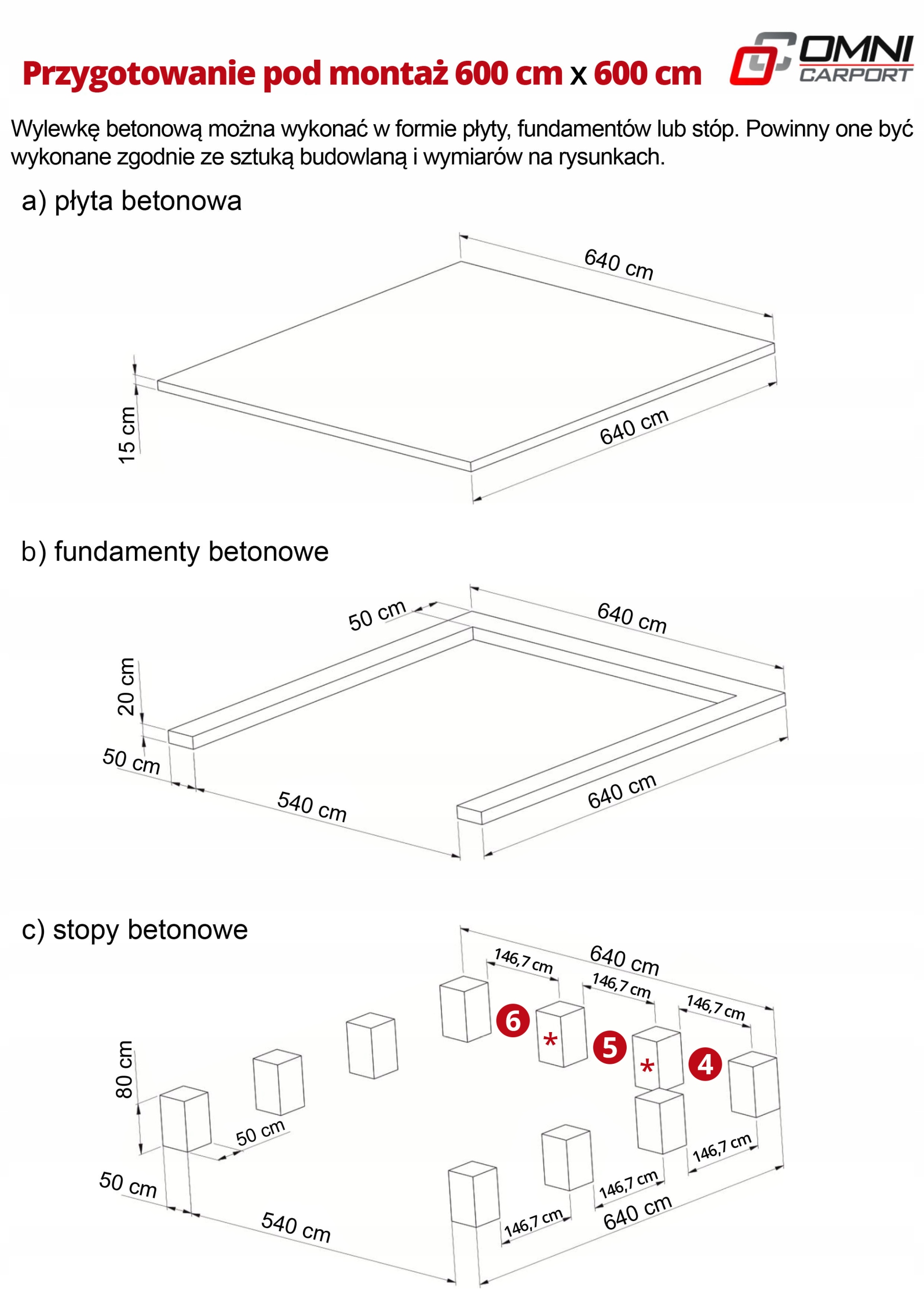 * ПРИ ИСПОЛЬЗОВАНИИ КОНСТРУКЦИИ С ЗАПОЛНЕНИЕМ (СТЕНАМИ) НЕОБХОДИМЫ БЕТОННЫЕ ОПОРЫ, ДЛЯ ПОЛЯ №. 4, 5, 6.