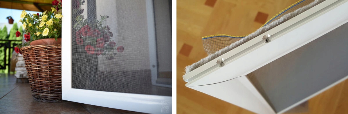 - обтекаемая форма (без пазов) «сливается» с рамой окна , что делает москитную сетку практически незаметной.