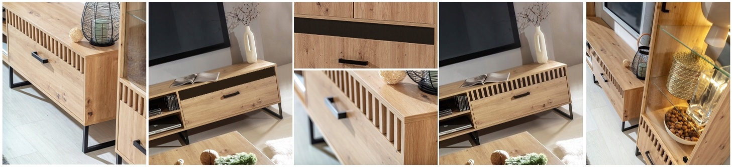 система состоит из: шкафа, полки, витрин, комодов, тумбы под ТВ, скамейки, подвесного шкафа, письменного стола, полок