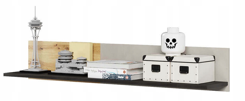 Практическая подвесная полка QUBIC для книг и/или украшений. Благодаря этому вы можете использовать стены для хранения вещей. Он прекрасно смотрится над другой мебелью из коллекции QUBIC – письменным столом, кроватью или комодом. Полка выполнена в трех цветах: светло-сером и с декором под дерево и необработанную сталь, что придает ей интересный современный характер. Мебель изготовлена из прочного ламинированного картона, отделанного прочной кромкой ABS.