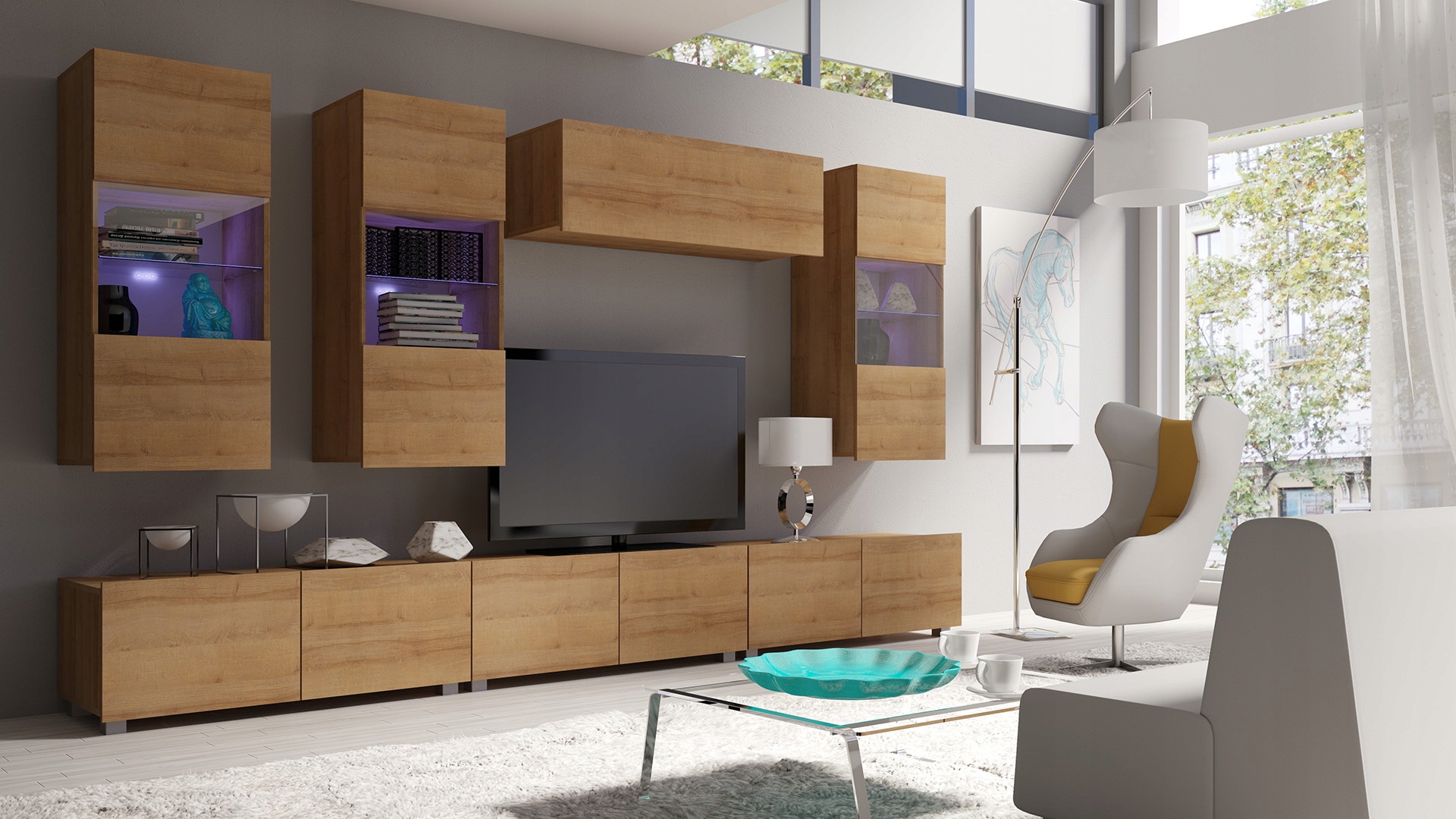 Подвесная подставка под телевизор, Белый, Черный, Золотой дуб, Gib Furniture