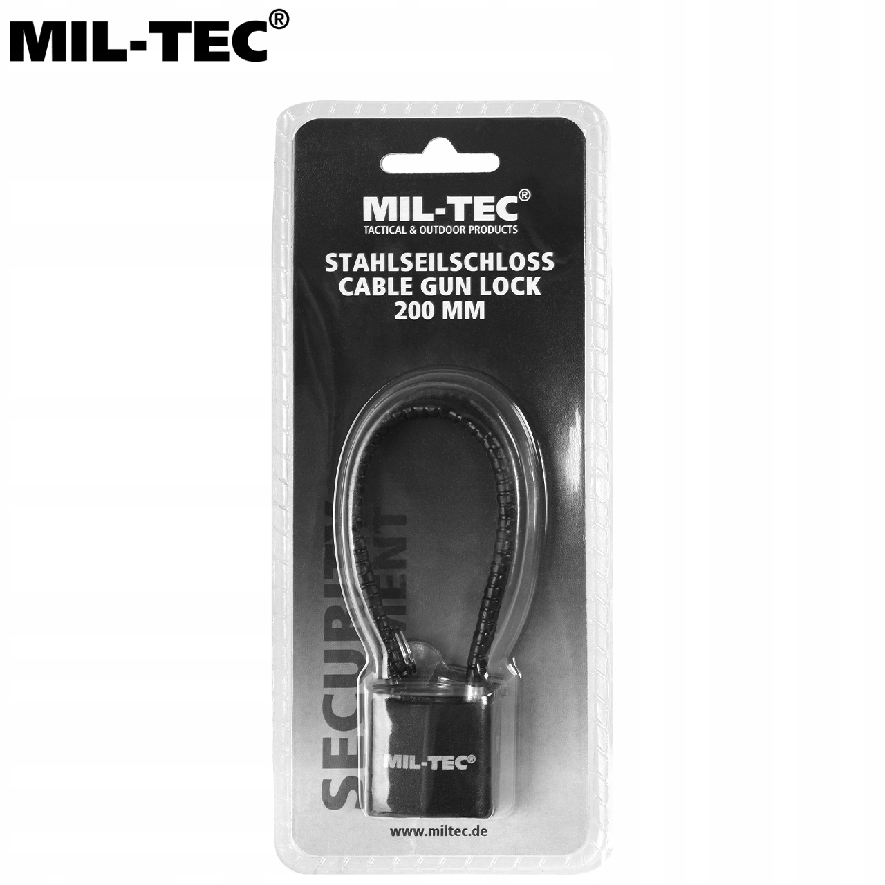 Навесной прочный замок со стальным тросом от немецкой компании Mil-Tec. В конечном итоге он используется для фиксации или обездвиживания оружия или его спускового крючка, но в равной степени подходит для фиксации сумок, рюкзаков, чемоданов и туристического снаряжения.