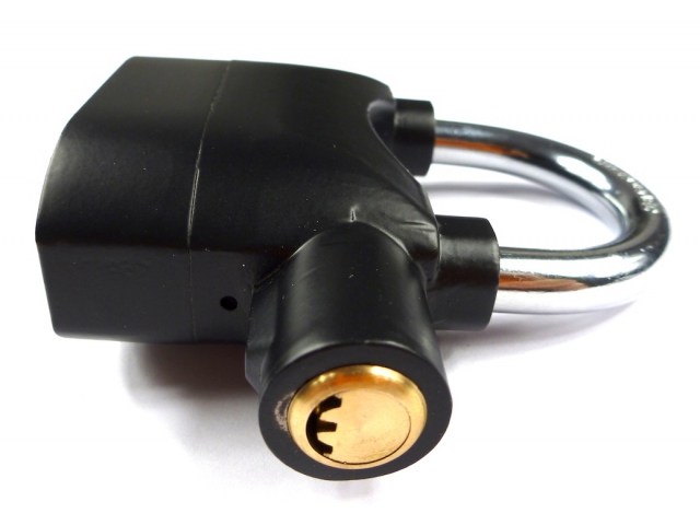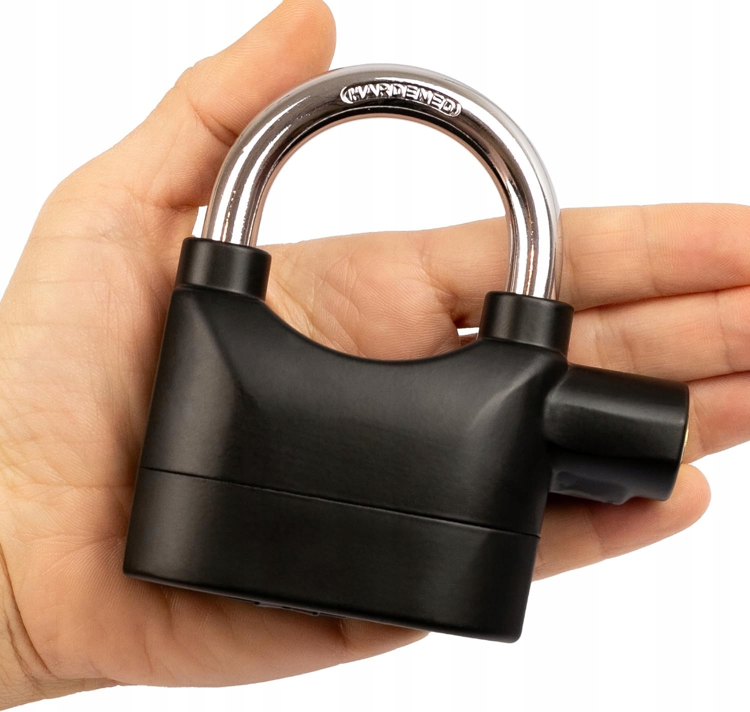 Навесной замок HMF 3503-02, функция сигнализации, 110 дБ, 9,8 x 7,1 x 3,35 см, черный ВСТРОЕННЫЙ ДАТЧИК УДАРА ДВИЖЕНИЯ